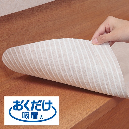 優しい足あたりで、階段の汚れやキズをガード。上り下りの足音も軽減できます。裏面はしっかり吸着加工でズレを防止。表面は、無地と、滑り止め加工の柄を施したタイプをご用意しました。