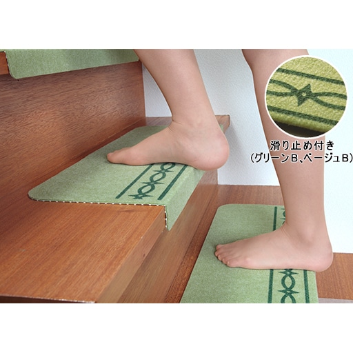 グリーン/B(すべり止め柄付き)Bタイプは、柄が目印になって階段を降りるときに段差がより分かりやすくなっています。