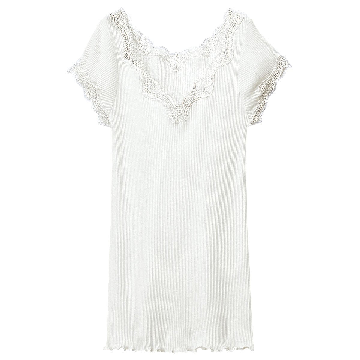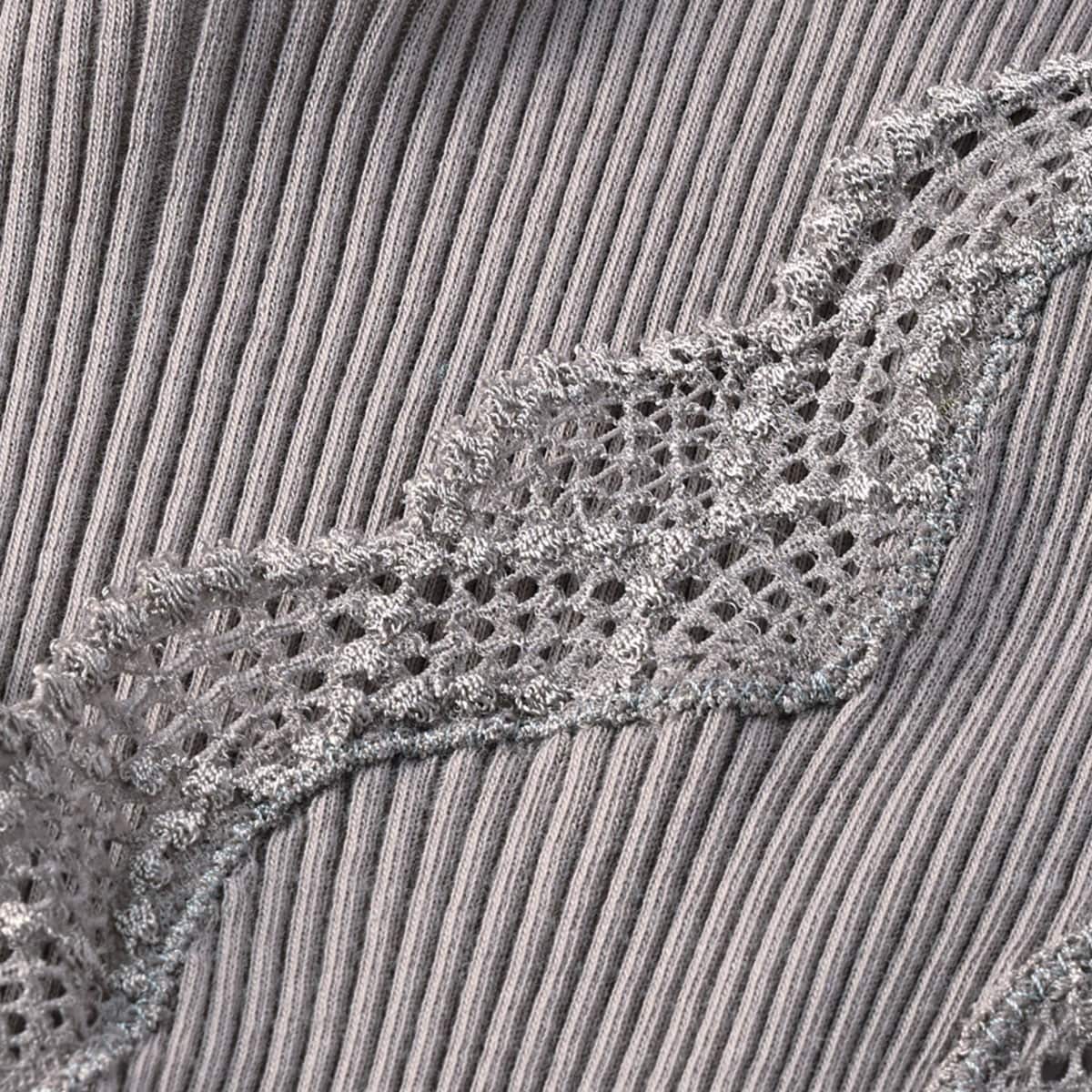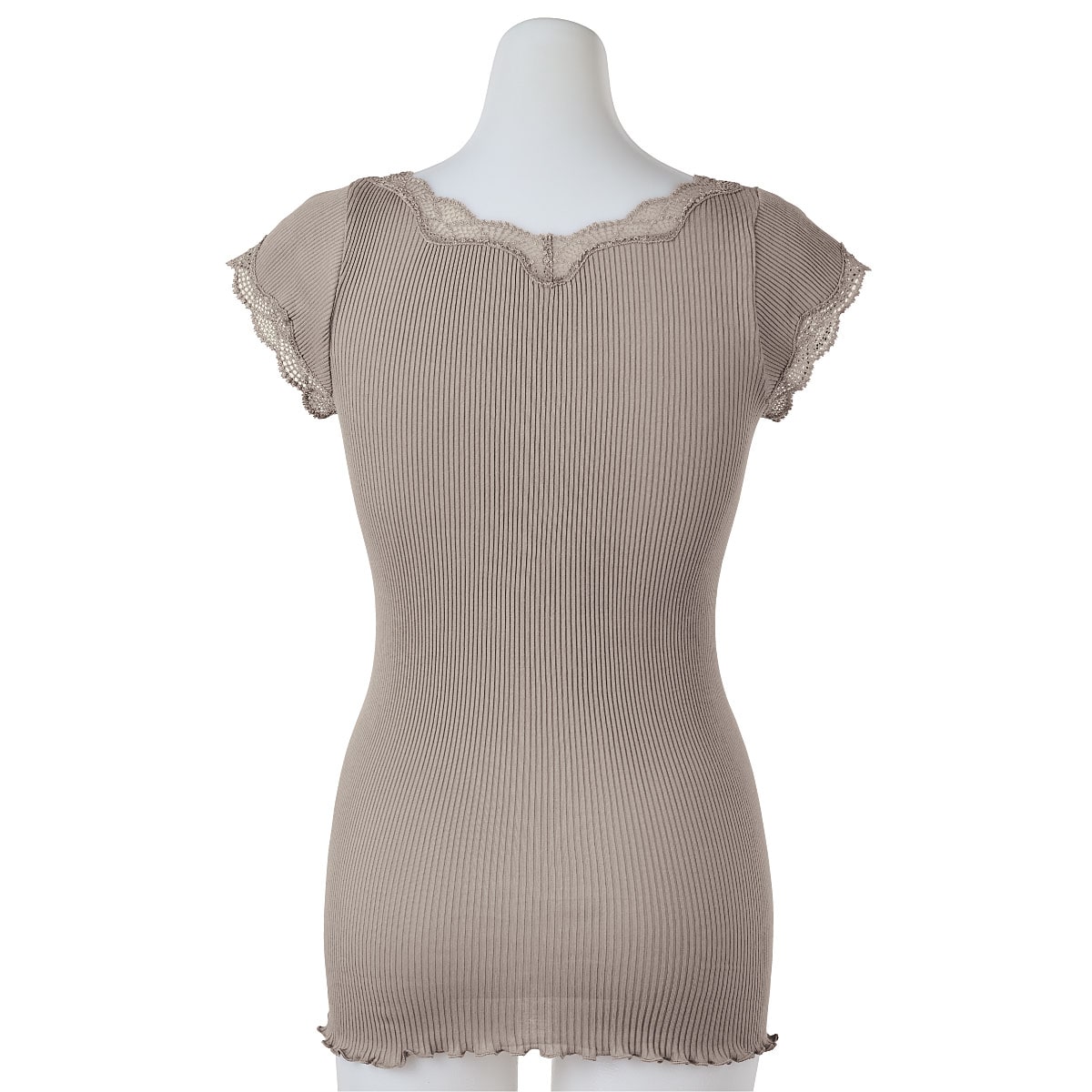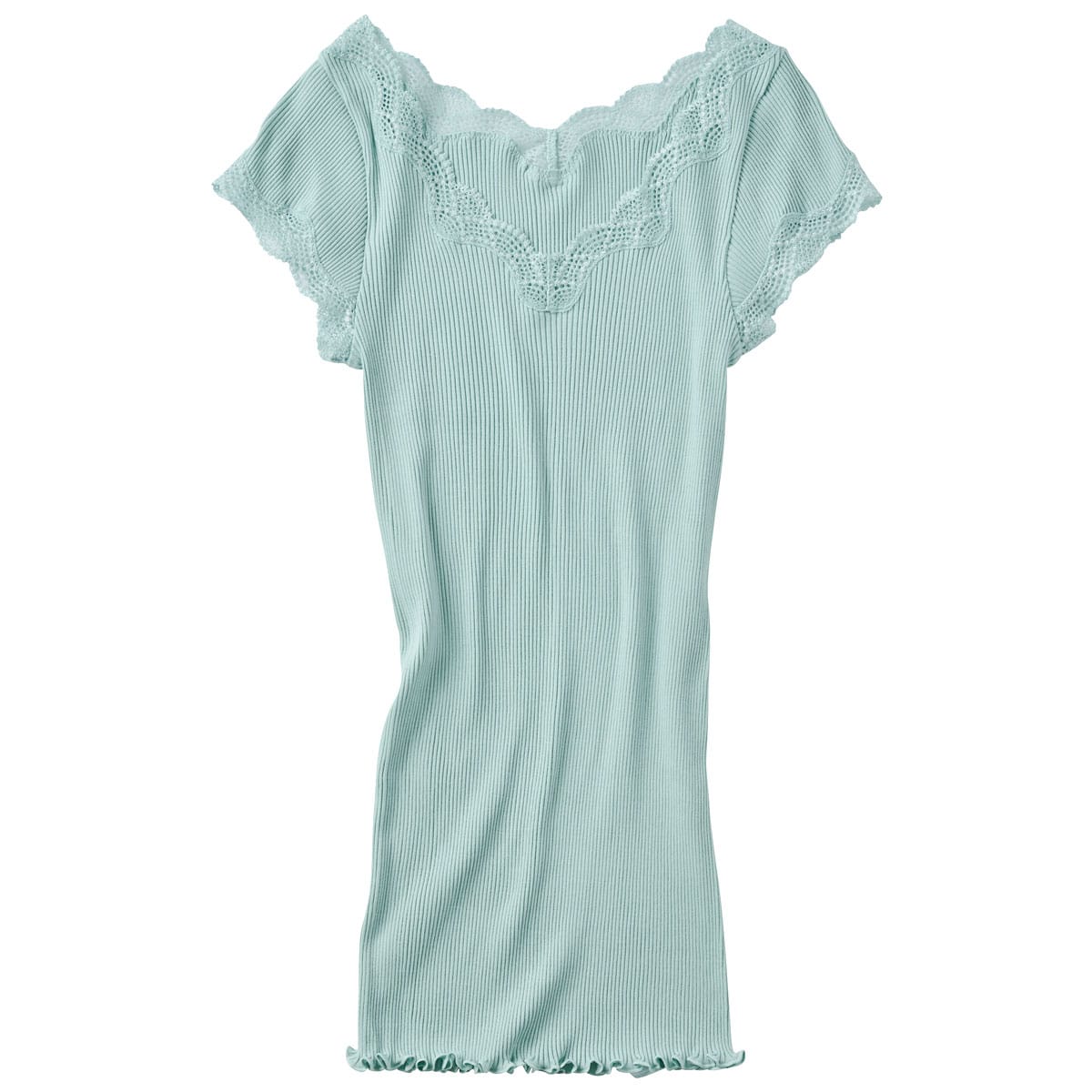 リブなので肌に付かず離れずで心地良い。生地も柔らかで伸びも良い。フレンチ袖はワキ汗も防止してくれるのでお気に入りです。首周りのレースも可憐でチラ見えがカワイイ。とにかく何枚も色違いで欲しい!リピリピです。(40代お客様)