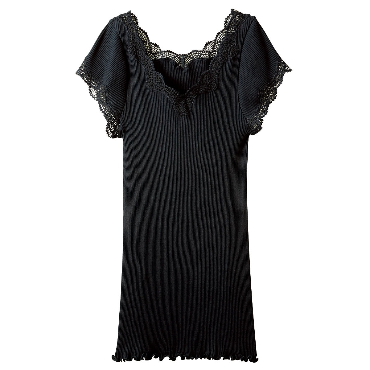 フレンチ袖インナー(贅沢レースにやわらかな着心地の綿100%リブインナー)