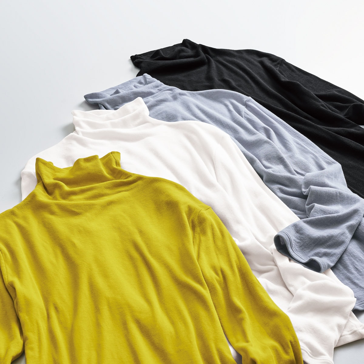 ふわっと伸びて軽やかフィット。肌あたりのやさしい綿100%ソフトシフォンのタートルネック