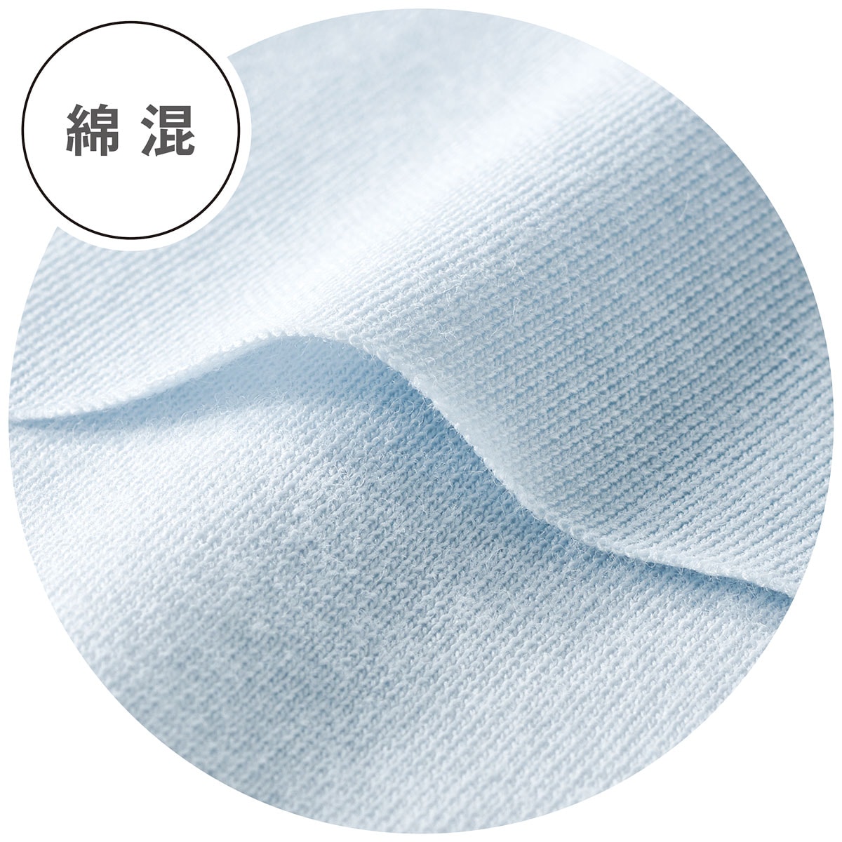 しなやかなフィット感ストレッチ天竺やさしい着心地の綿混素材。吸汗速乾だから、一年中快適。