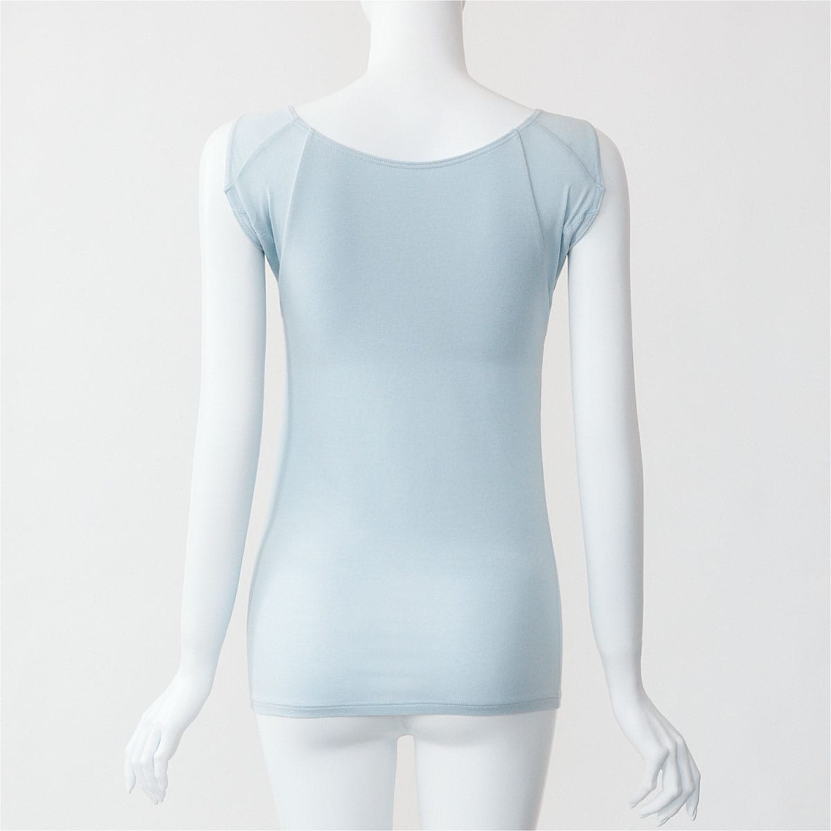 肩部分はノースリーブ仕上げ。袖のラインが透けて見えないので、気にせずコーディネートが楽しめます。