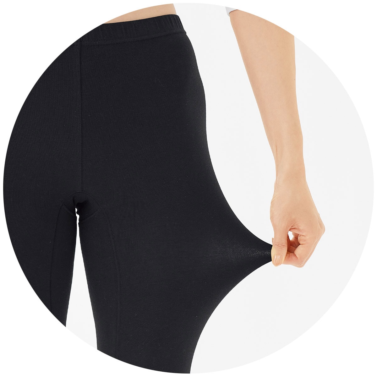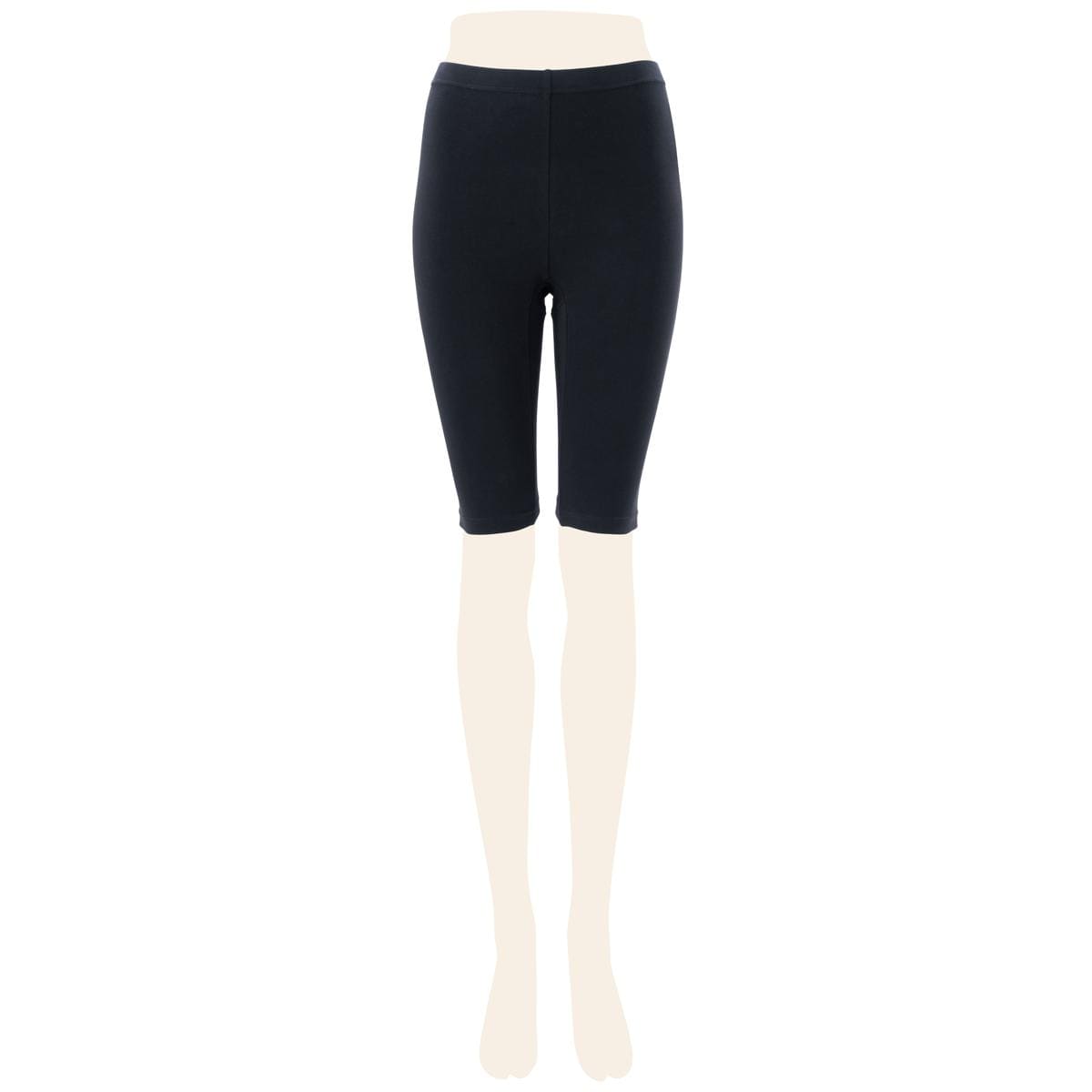 裏当て二重仕立ての綿混スパッツ・5分丈ブラック(同色2枚組) 着用例