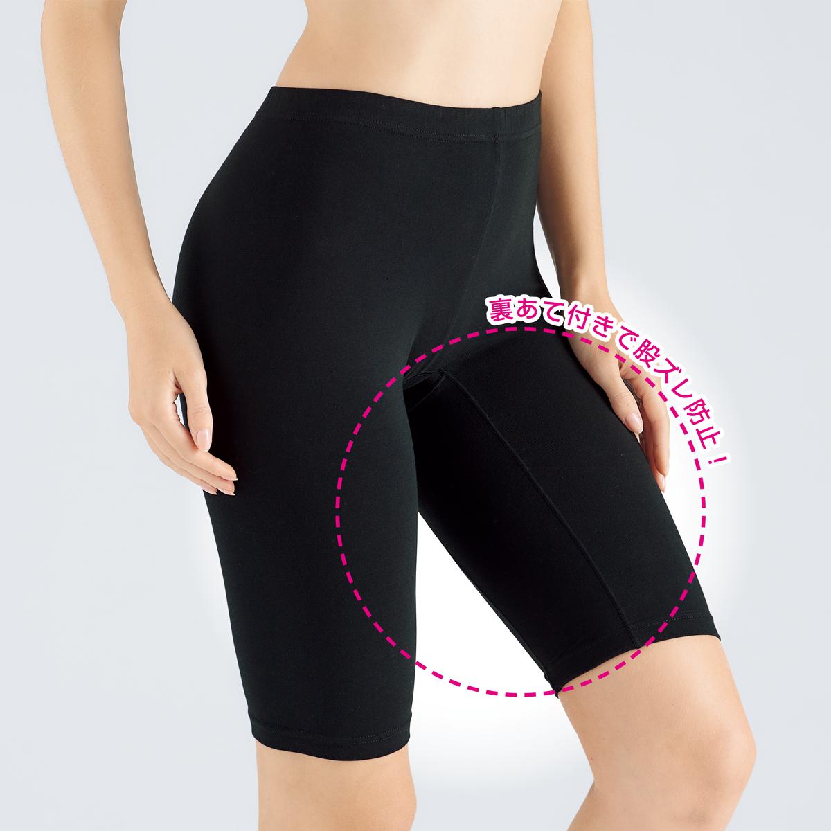 股ズレ対策にも便利な綿混5分丈スパッツ(同色2枚組)