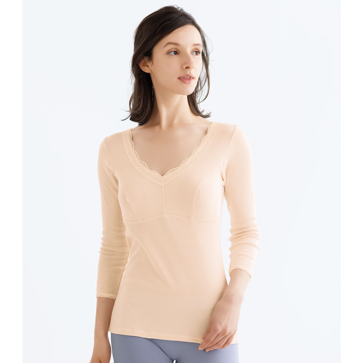 肌ざわりの良さとお手頃プライスが人気!綿100%素材のソフトカップ付き8分袖インナー