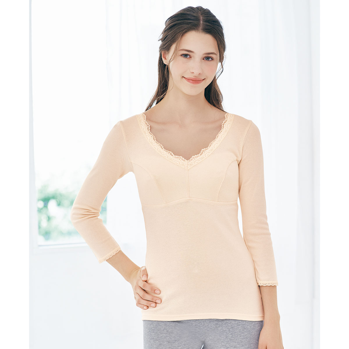 肌ざわりのよさとお手頃プライスが人気!綿100%ソフトカップ付8分袖インナー