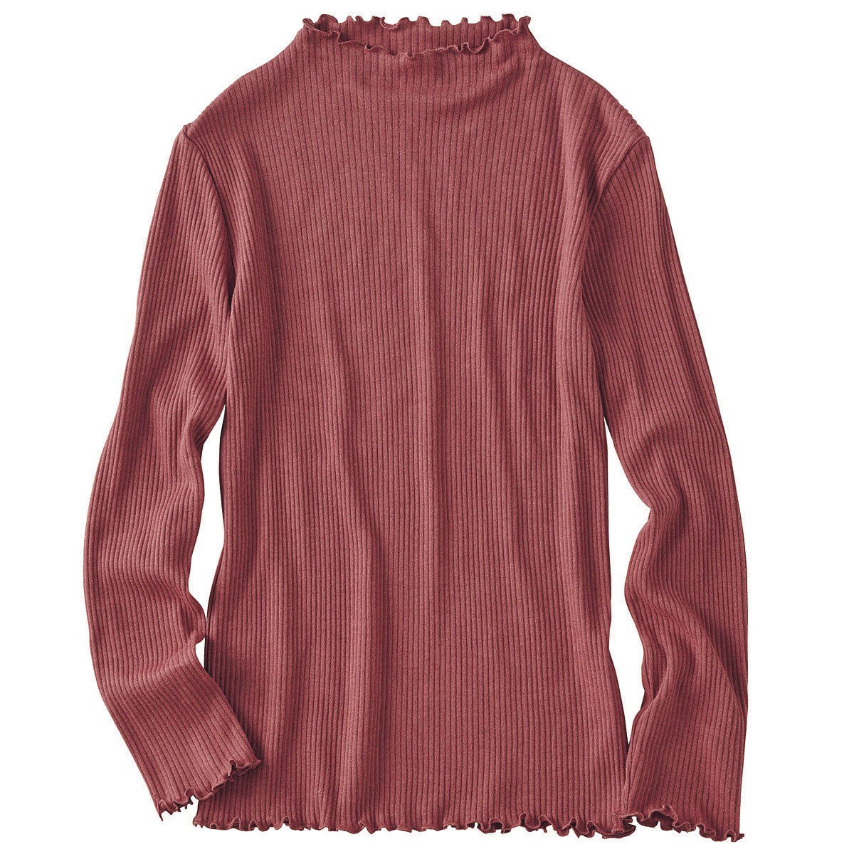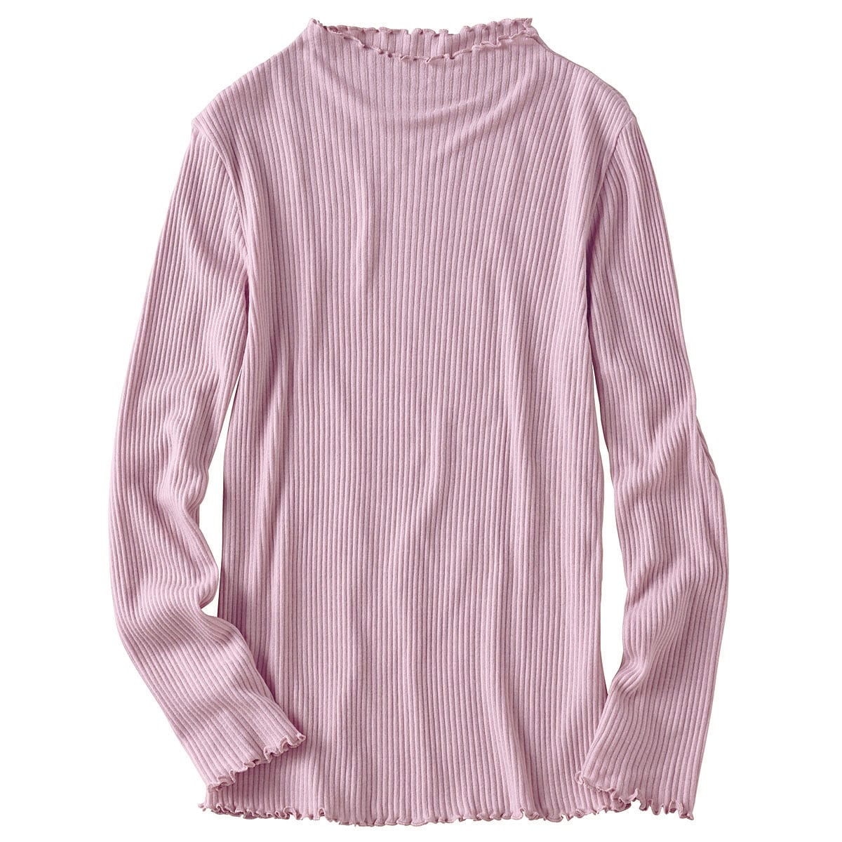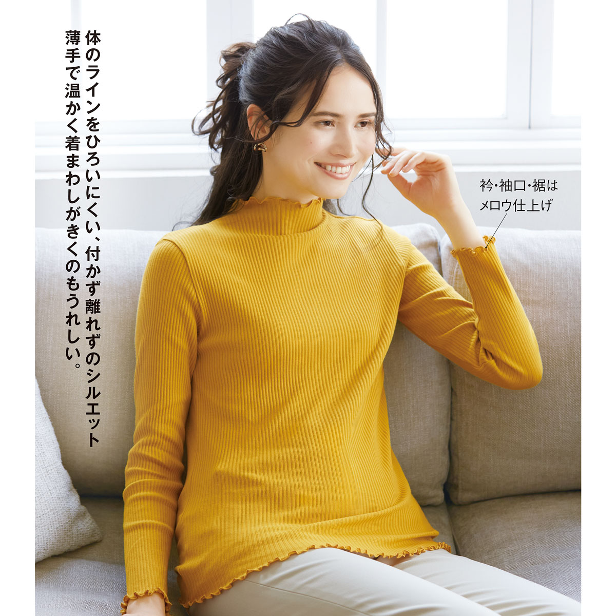 上品で愛らしいメロウ仕上げがフェミニンな重ね着コーデのアクセントに♪やさしい肌ざわりであたたかい綿ウール素材のボトルネック10分袖