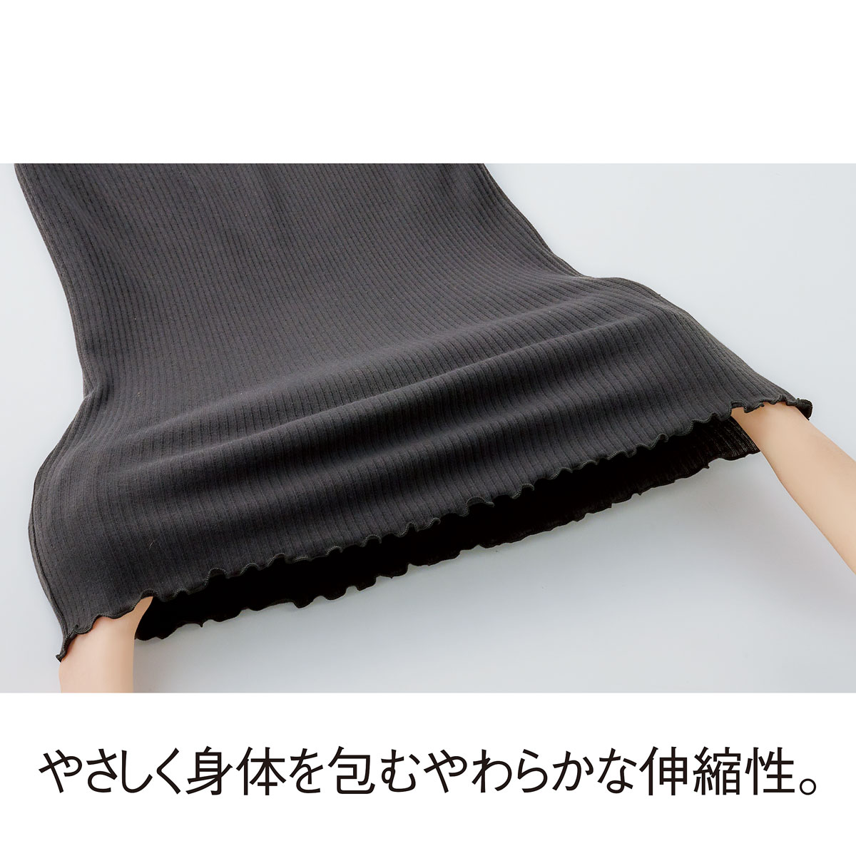 体のラインをひろいにくい付かず離れずのシルエット。コーデに使いやすいリブインナーです。