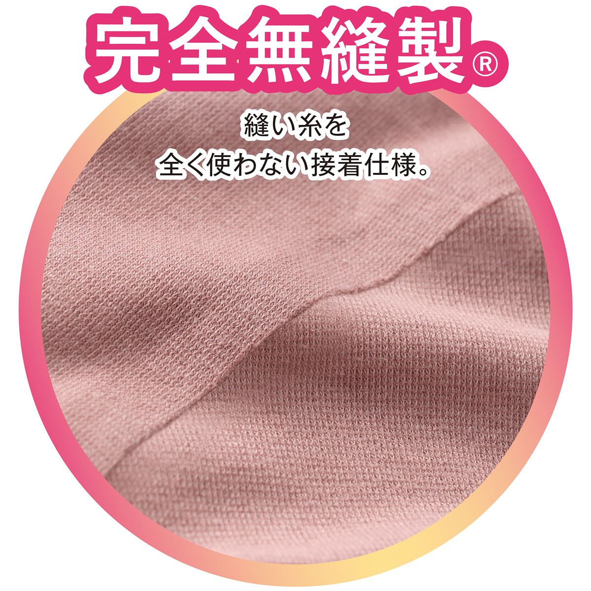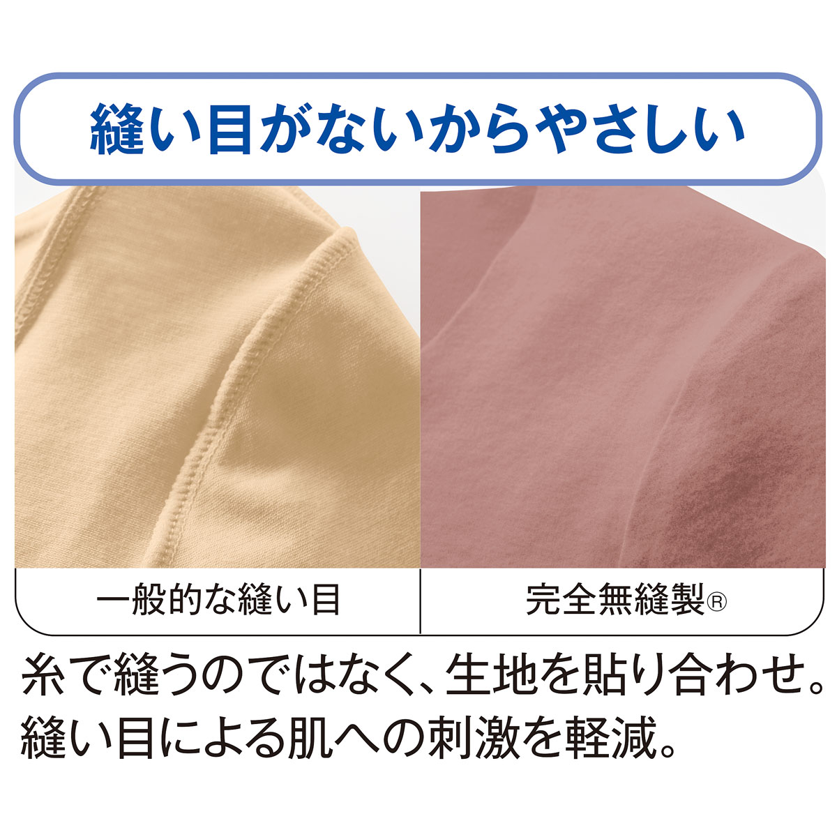 完全無縫製 縫い目がないからやさしい。糸で縫うのではなく、生地を貼り合わせ、縫い目による肌への刺激を軽減。