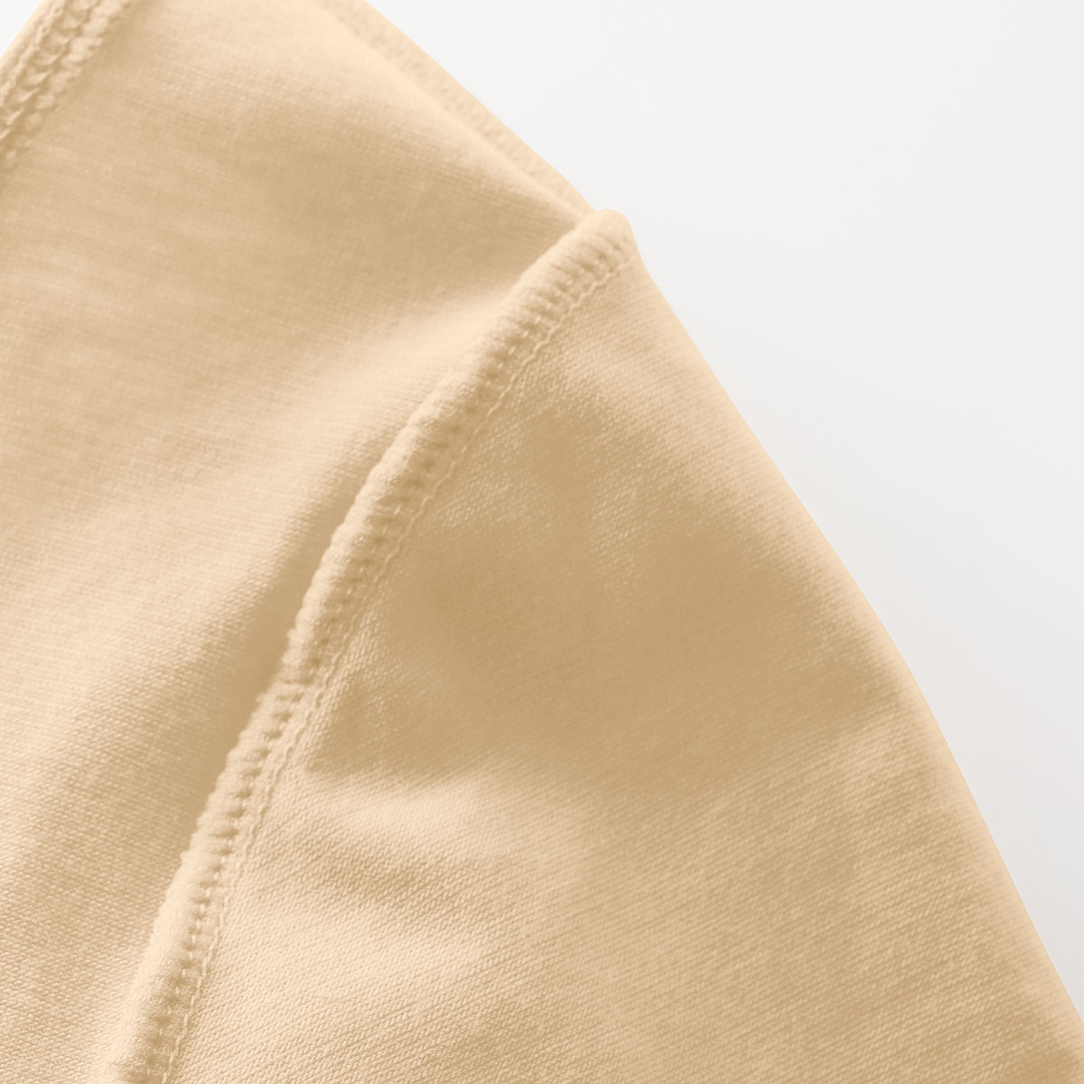 切りっぱなしと接着仕様でアウターにひびきにくく、肌への刺激も軽減