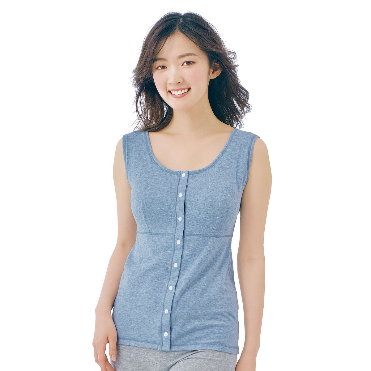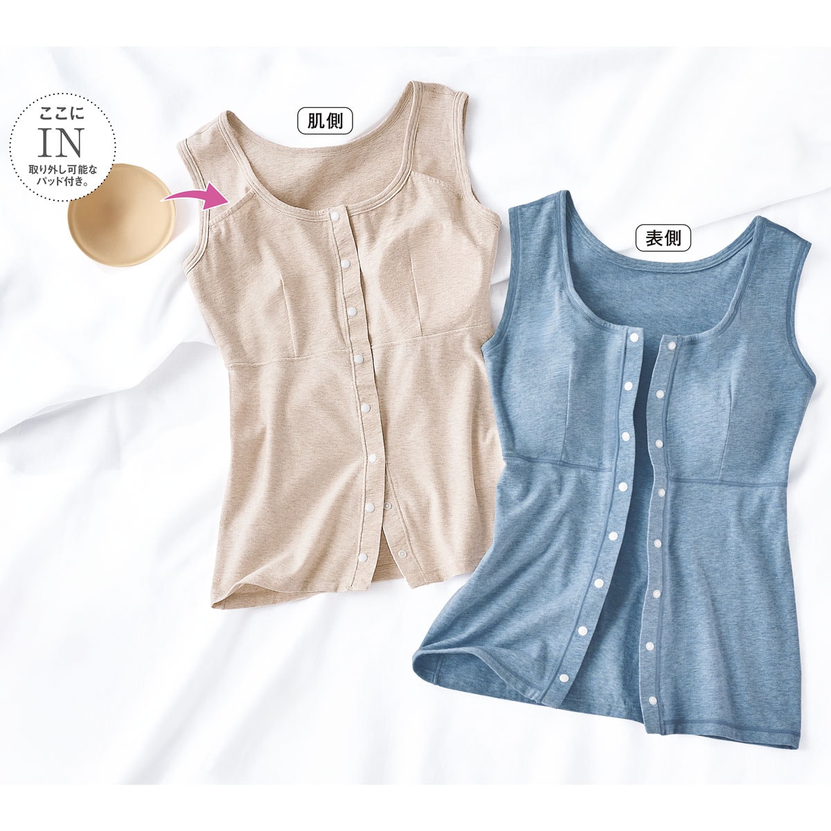 肌あたり優しいらくちん前開きパッド付きスリーブレス
