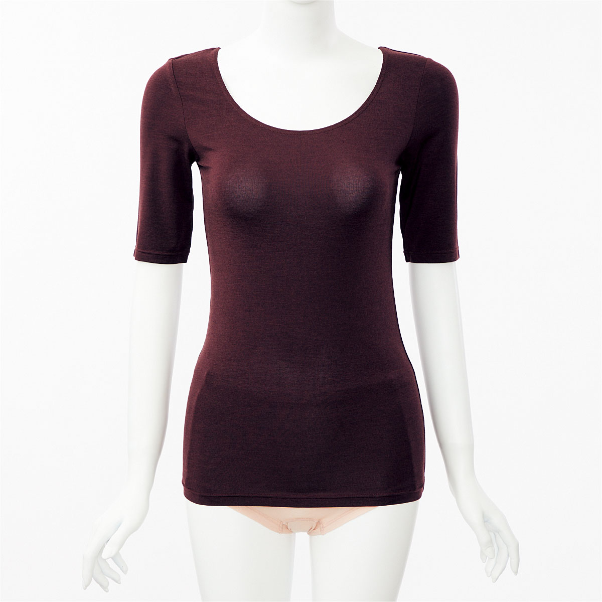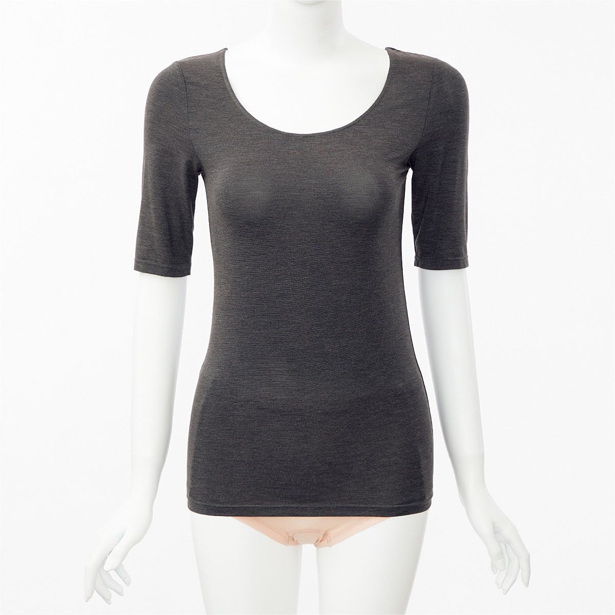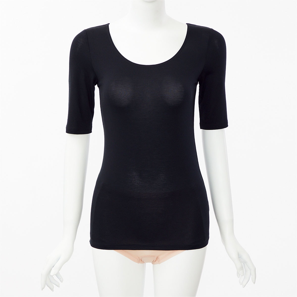 薄くて軽くてあたたかいインナー(衿すっきり5分袖)(スマートヒート®)