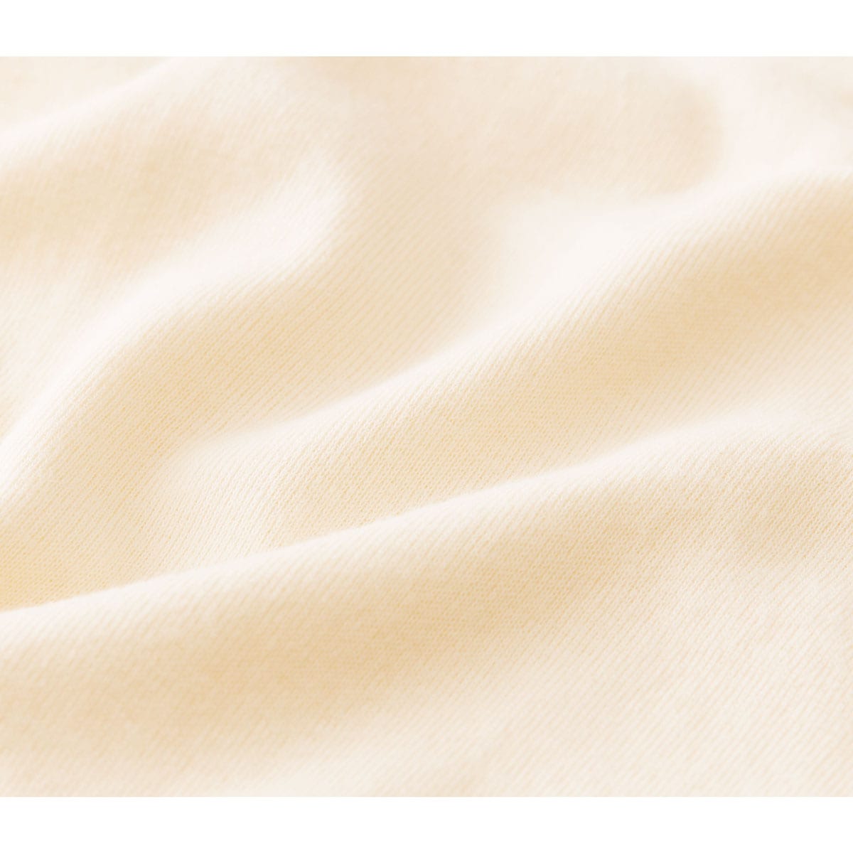 • インド綿100%の特徴<br>機械ではなく手摘みで収穫。コットンボールを傷めることなく柔らかく、ふんわり編み上げたフライス素材。通気性や吸水性に優れ、ぬめり感のあるソフトな風合いが特長です。 綿100%