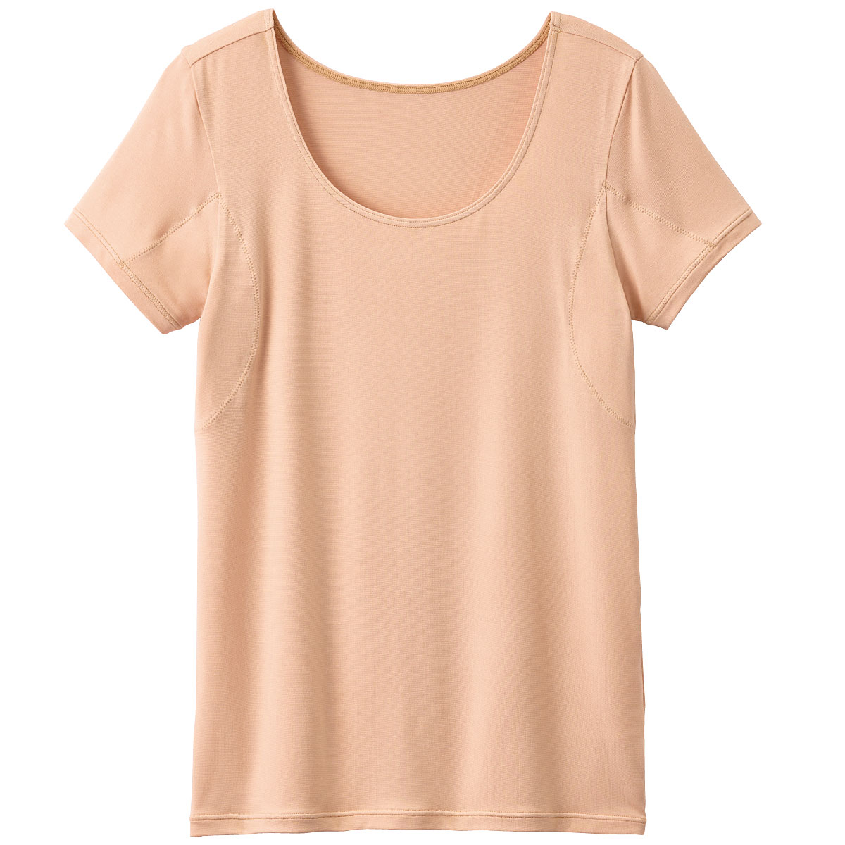 脇汗をしっかり、さりげなくカバーするために脇部分に汗取りパッドを付けました。(肌側)(※写真の商品は、同素材のUE-1657です。)