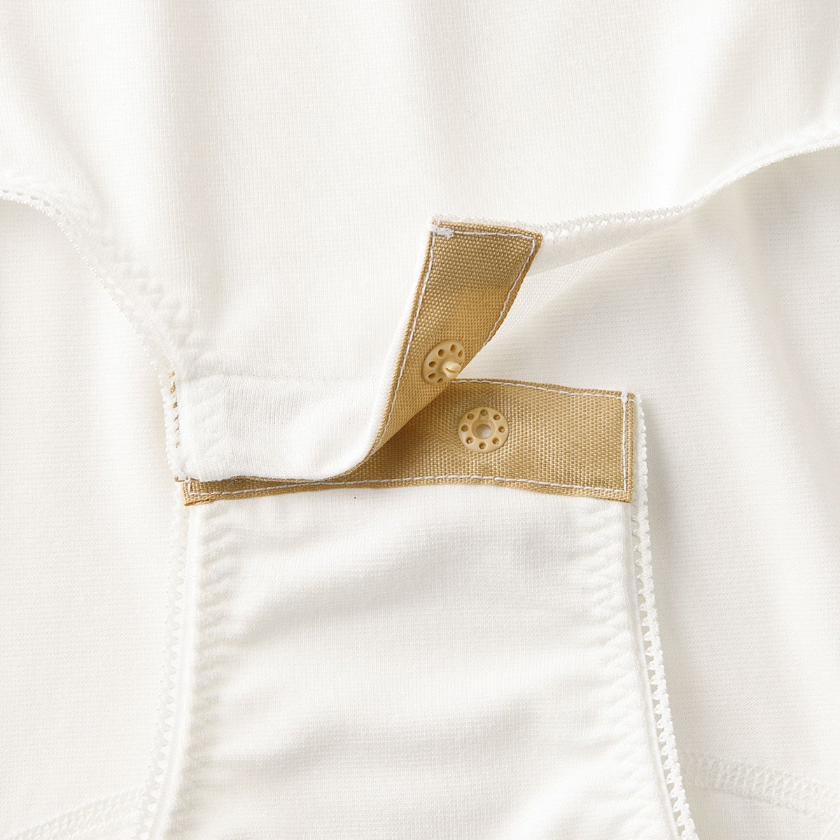 クロッチ部分はスナップなので着脱も簡単です。 ※クロッチ部分スナップカラーは、オフホワイトとハニーベージュはベージュ、ブラックはブラックです。