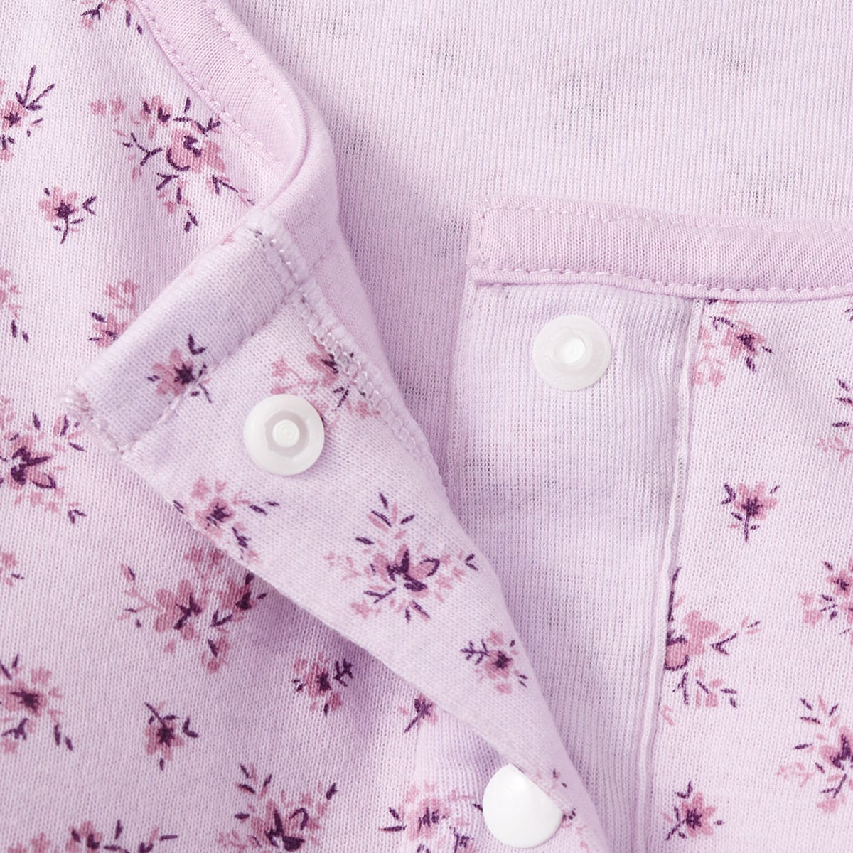 スナップボタンでフロントが全開するので、腕を通しやすいインナーです。取り外し可能なシームレスパッド付きだから1枚でも安心。柔らかな綿100%素材で、脇や肩などの縫い代は全て肌に当たらない仕様に。前中心のボタン裏も身生地の裏当て付きで、ボタンも肌に当たりません。洗濯表示もプリントにして、肌にやさしい仕様にとことんこだわりました。リラックスタイムやおやすみ時はもちろん、検診時などにも活躍します。使いやすい無地と、気持ちまで明るくなる花柄プリントの2色をご用意。