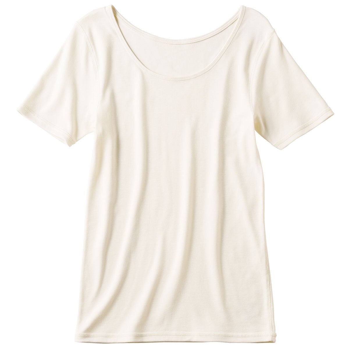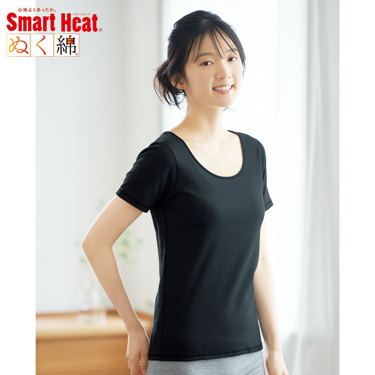 発熱するやわらかコットン100%「Smart Heat® ぬく綿®」。縫い代を外側にした肌に優しい縫製仕様。ラウンドネックの3分袖インナー。