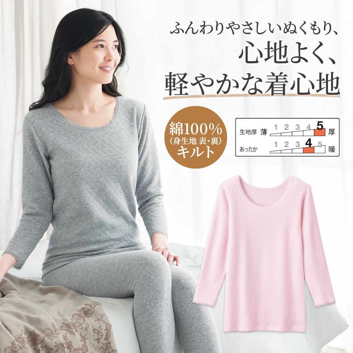 ふんわりやさしいぬくもり表裏綿100%キルト8分袖インナー
