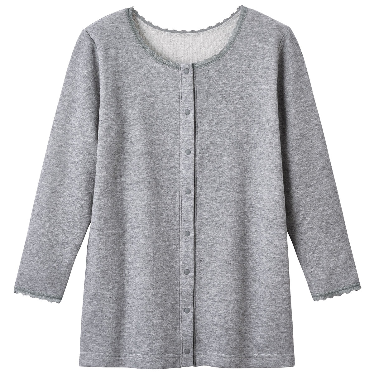 やさしいコットンでサンドしたふわふわの中わたに、自然なぬくもりを閉じ込めて。ふんわり軽やかなあったかキルトの前開き8分袖インナー
