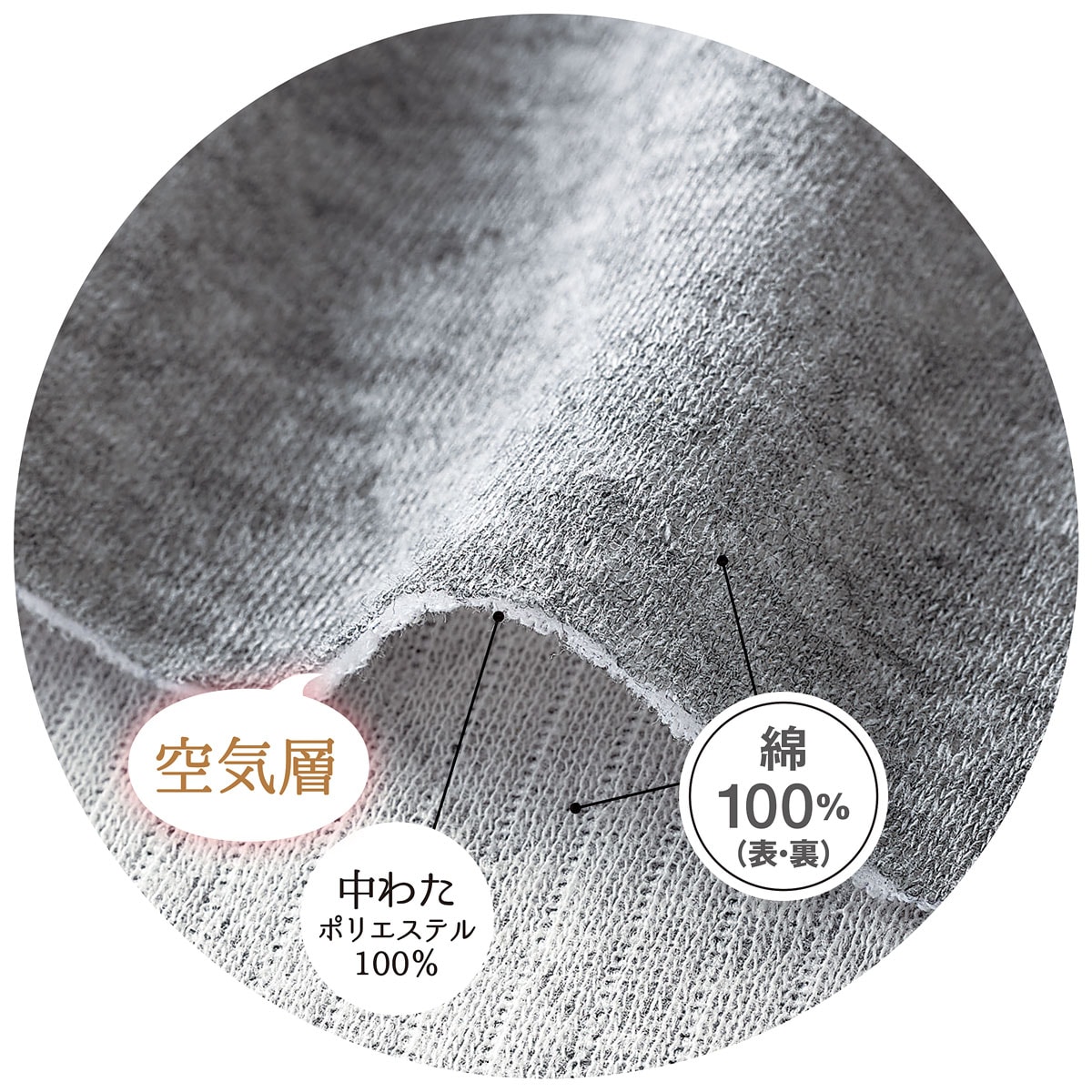 やさしいコットンでサンドしたふわふわの中わたに、自然なぬくもりを閉じ込めて。ふんわり軽やかなあったかキルトの10分長インナーボトム
