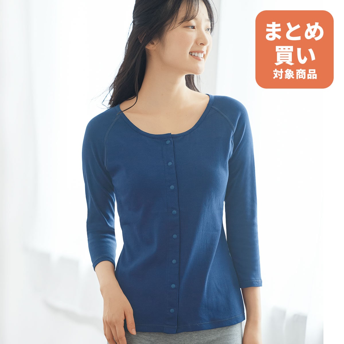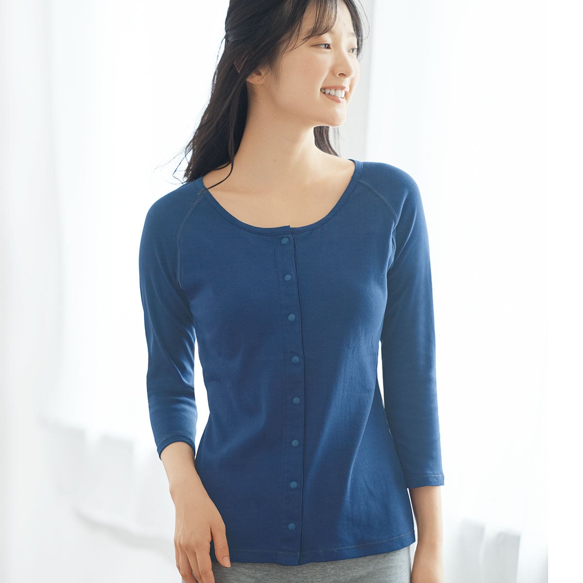 肌あたり優しいらくちん前開きパッド付き8分袖(綿100%)
