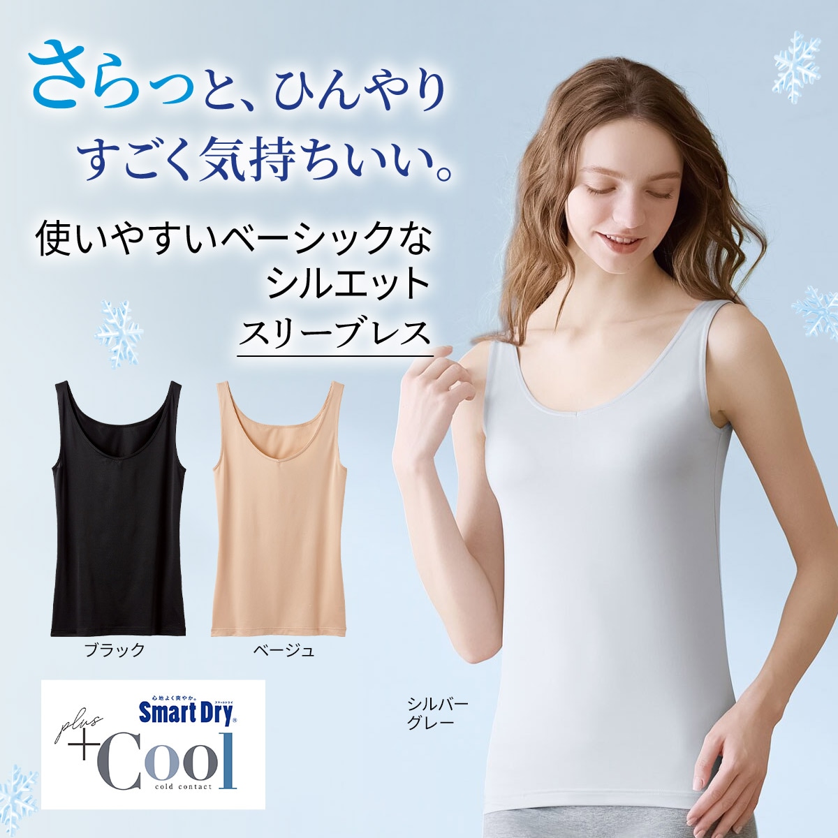 【Smart Dry® plus Cool】さらっと、ひんやり、気持ちいい。接触冷感や吸汗・速乾など、夏にうれしい快適機能満載のスリーブレスインナー