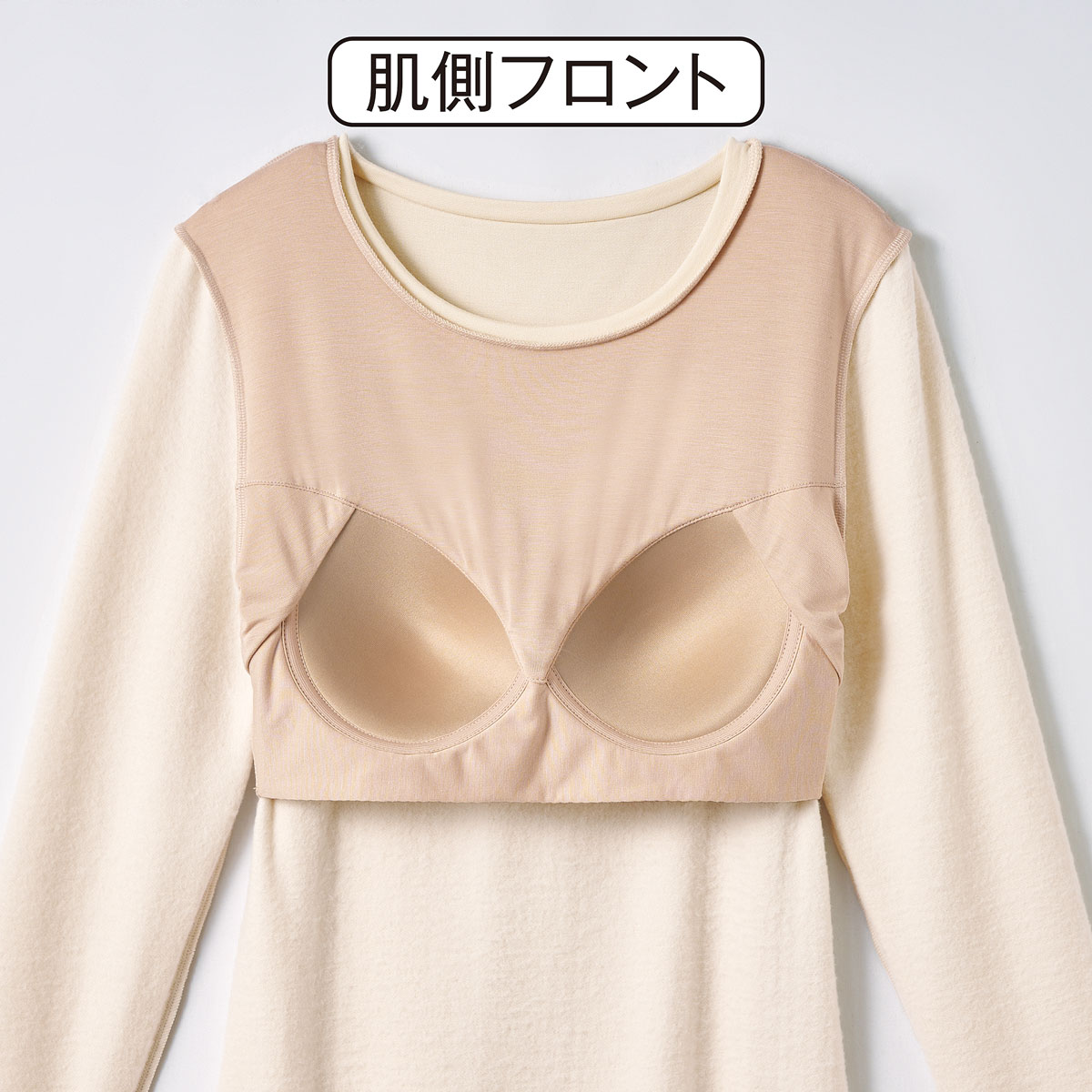 ■本体=綿35%レーヨン30%アクリル30%ポリウレタン5%(ストレッチ裏起毛)▼カップ部分は、ブラックとブラウンはブラック、アンティックホワイトはベージュです●中国製【吸湿発熱】 【保温】 【あったか指数5】 【肌側綿】 【下厚モールドカップ約10mm】 【大きいサイズも展開】(M~3L)【生地厚指数4】
