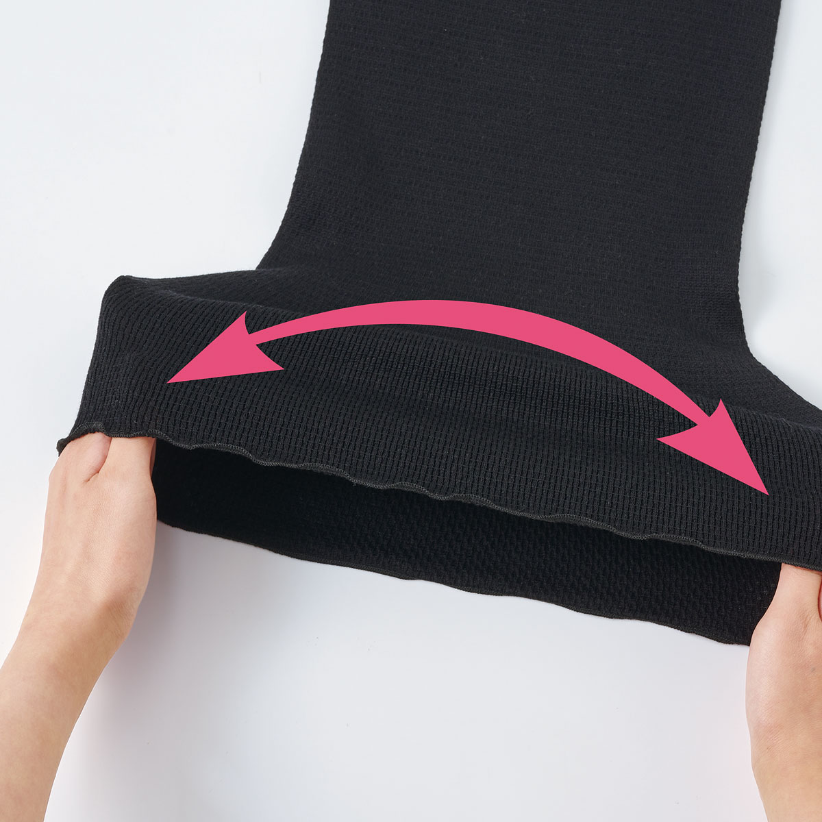 伸びが良く、脇縫いなしで、お腹にすっきりフィット ヨコ方向によく伸びてやさしくフィットするハニカム編み。