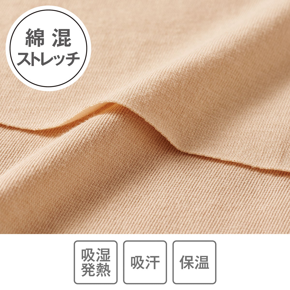 ■綿45%アクリル30%レーヨン20%ポリウレタン5%(ストレッチ天竺)●中国製【綿混ストレッチ】 【防水布あり汗取りパッド付き】 【吸湿発熱】 【吸汗】 【保温】 【あったか指数2】 【大きいサイズも展開】(M~3L)【生地厚指数2】