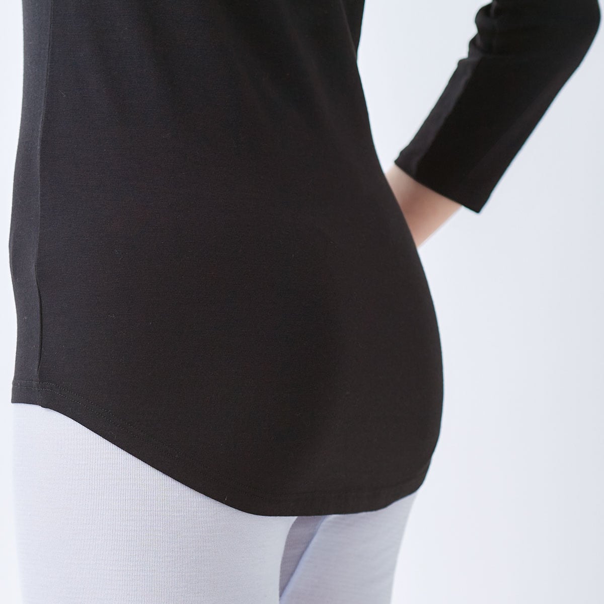 外は寒いのに、電車内や室内はとってもあったか。そんな時にオススメなのがこちらのインナーです。身生地は、体から発散される水分を吸着して発熱するあったか素材を使用、脇部分には防水布が入った大きめの汗取りパッド付き。急な寒暖差で脇汗をかいても安心です。頻繁に洗濯できない冬のニットのインにも、1枚持っていると重宝します。ヒップまでカバーする長めの後身は、あたたかいだけでなく、かがんでも背中が出にくいのも嬉しい。ストレッチ性がある綿混生地を使っています。