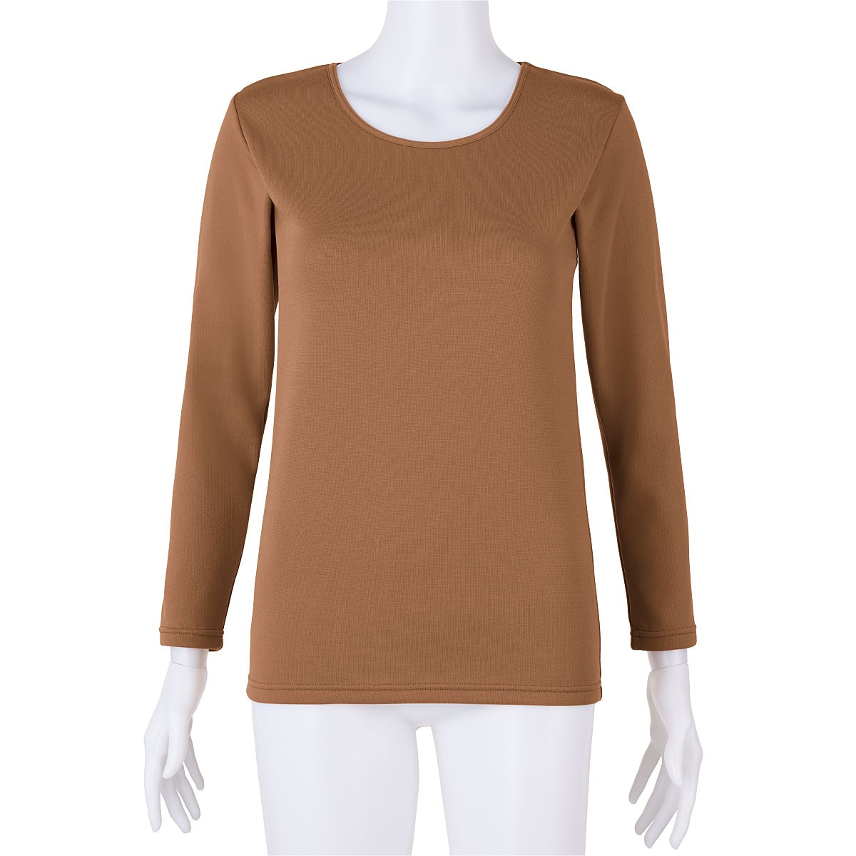 厚地なのによく伸びて動きやすくてあったか、なめらかな肌触りも嬉しい、伸びる裏ボア素材の8分袖インナー。厚地なのによく伸びるから、アウターを重ねても動きやすくて快適!衿ぐりが狭めだから、首から入る風も軽減できて、寒い日の外出も安心。