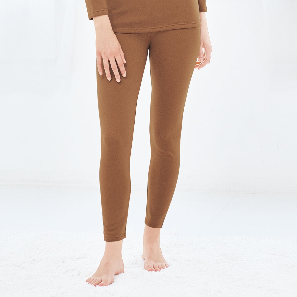 肌側は、まるで毛布みたいにあったかいボアがたっぷりで、ふわふわヌクヌク。表側はアウターのすべりが良い滑らかな肌ざわりでとっても柔らか。厚地なのによく伸びるから、アウターを重ねても動きやすくて快適!股上も程よく長めで、お腹とお尻をすっぽり包み込んでくれます。このインナーで、寒い冬を快適にお過ごしください。