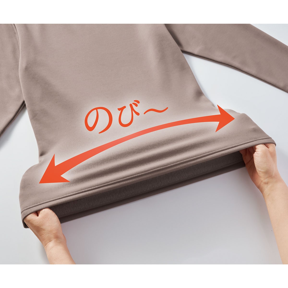 厚地なのによく伸びて動きやすくてあったか、なめらかな肌触りも嬉しい、伸びる裏ボア素材の8分長インナー