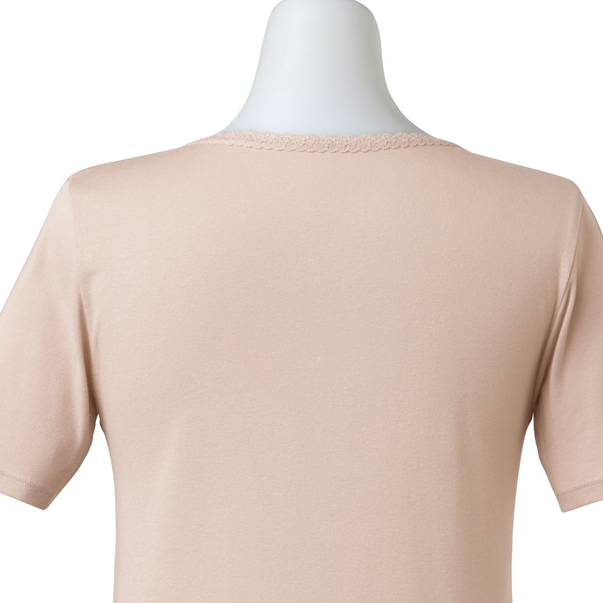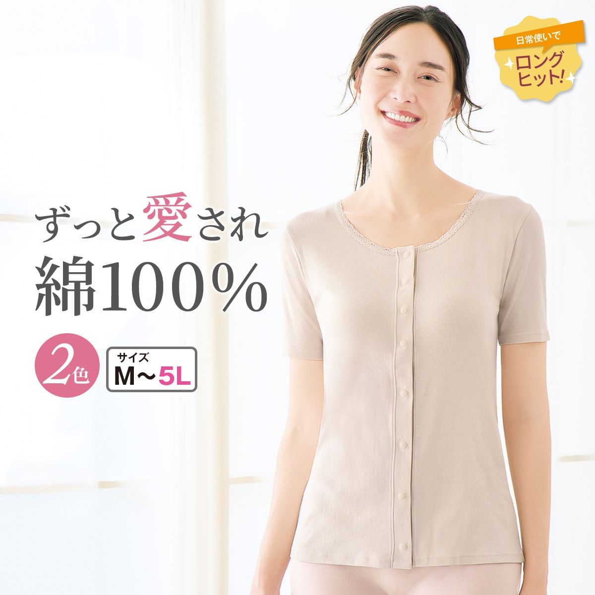 フロントがスナップボタン仕様で脱ぎ着がしやすい、やさしい着心地の綿100%3分袖インナー