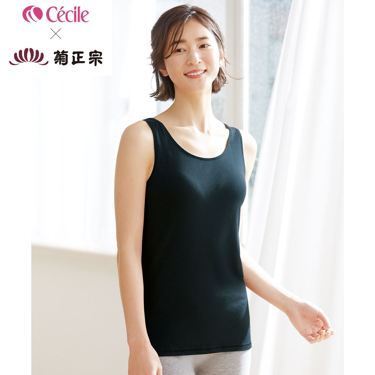 素肌にもっと潤いを。老舗日本酒ブランド「菊正宗」とコラボした保湿素材のノースリーブ。お肌の乾燥が気になる季節におすすめの肌着です。