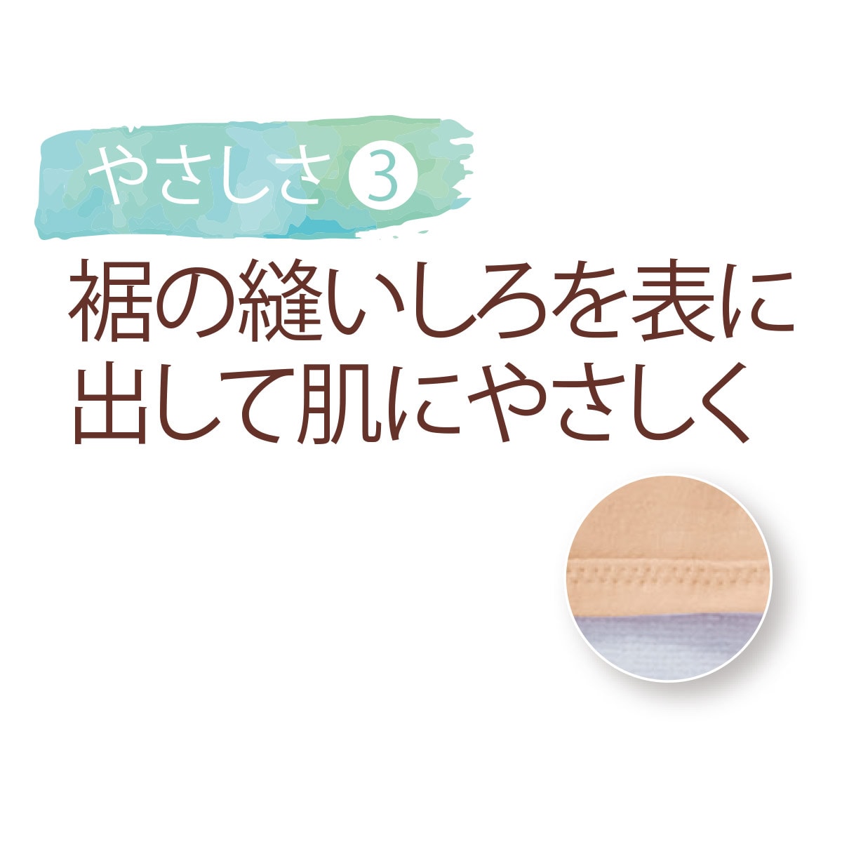 バストを支えるアンダーゴムを表側につける設計で肌当たりのやさしさを追求。