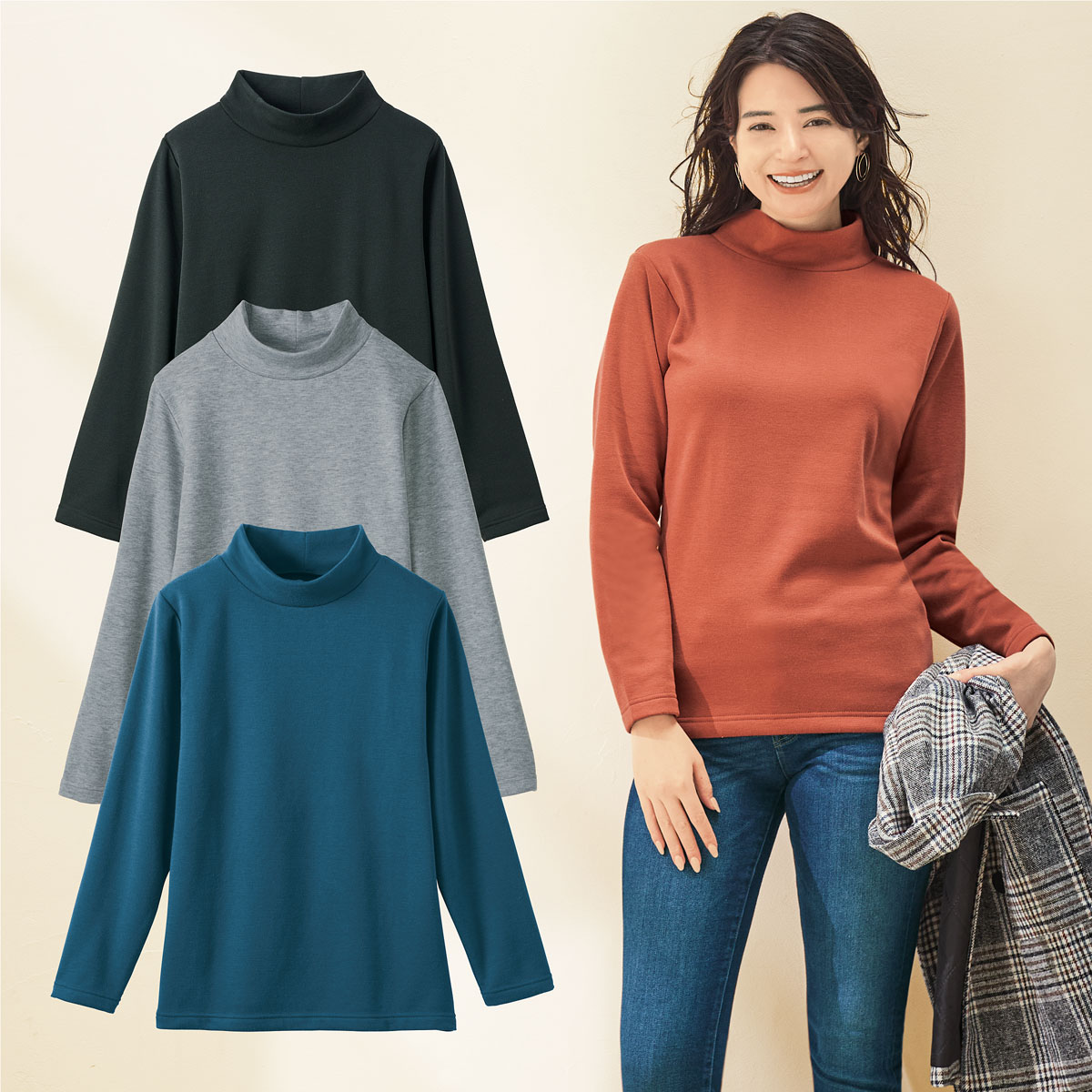 肌側あったかボアのハイネック長袖カットソー/軽やかな着用感(裏ボア)