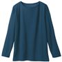 ふんわりぬくぬく、やさしい着心地。冬用あったか素材の代表格、裏ボアのトップスです。ポリウレタン混で伸縮性がよく動きやすいのもポイント。1枚でおしゃれ見えして、着回しにも活躍するシンプルなデザイン。こちらは衿元が開きすぎず、すっきりとしたボートネックタイプの長袖で、重ね着にも便利。大きいサイズ(~5L)もあります。