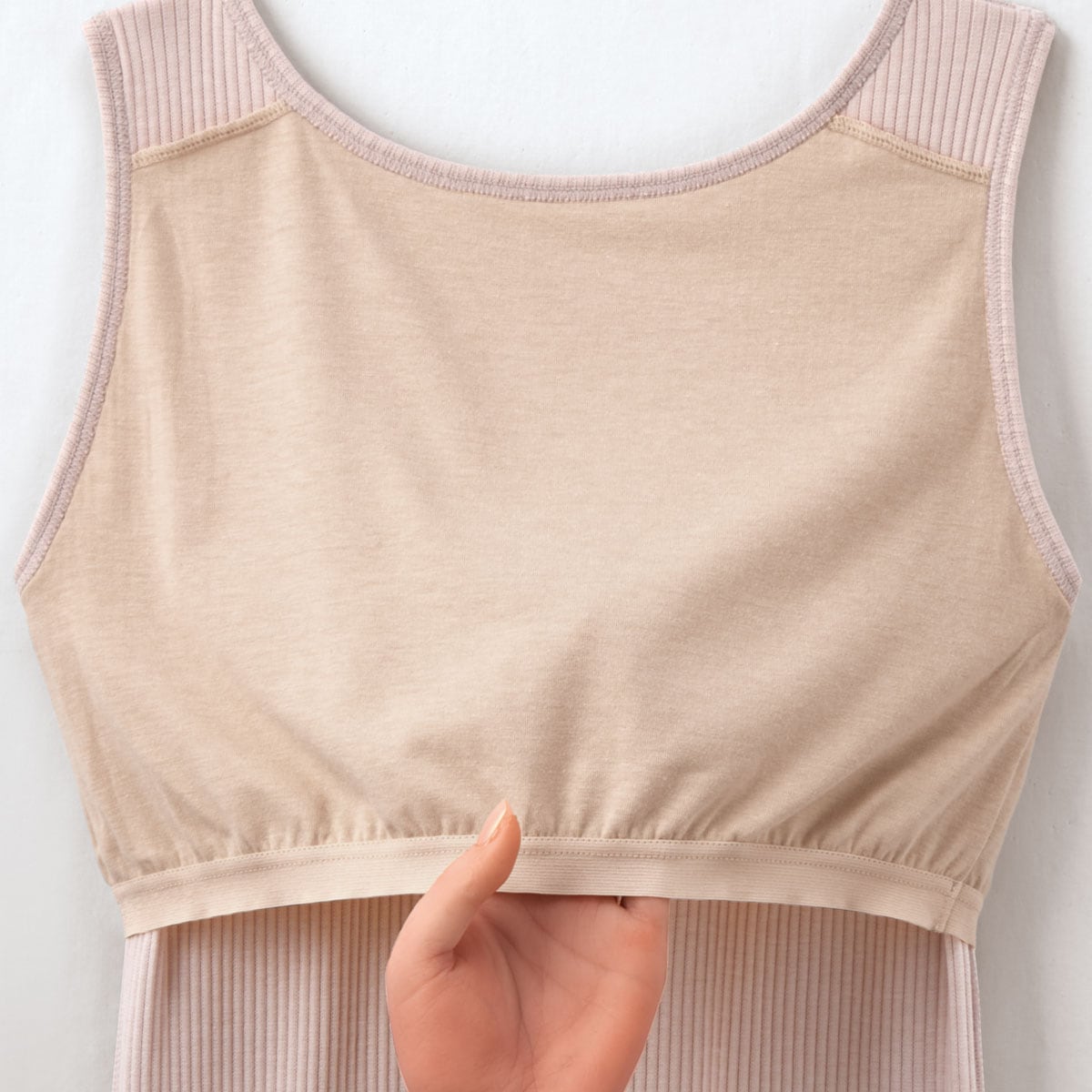 1枚でも着られる!カップ付き綿混ストレッチリブ素材のタンクトップ。