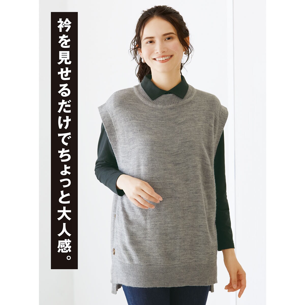 無地のシンプルなデザインで着まわしやすい。両脇スリット入りで動きやすい。 ブラック着用例