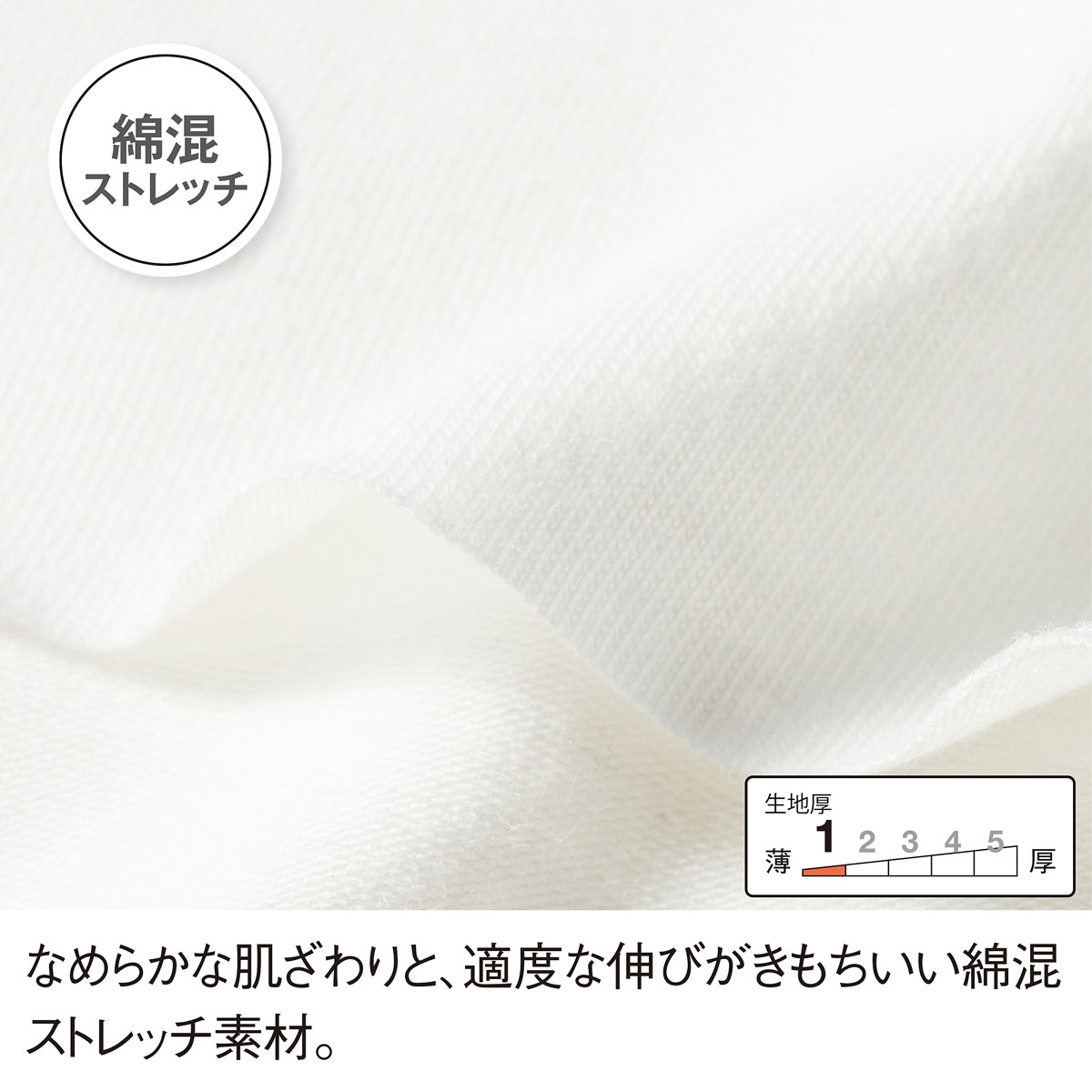 なめらかな肌ざわりと、適度な伸びがきもちいい綿混ストレッチ素材。