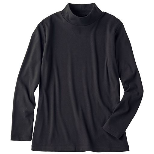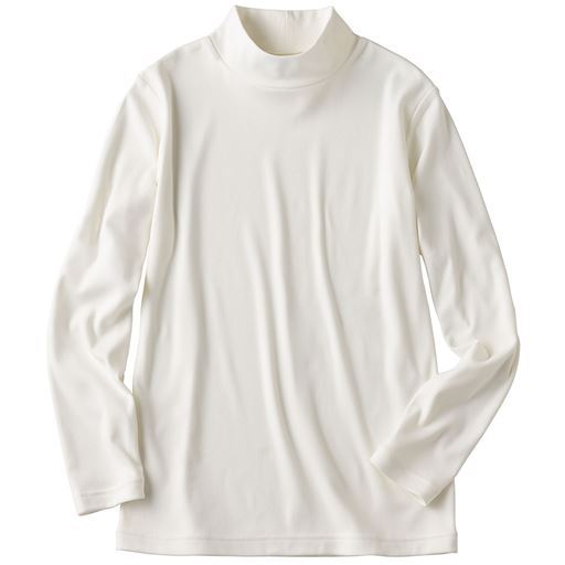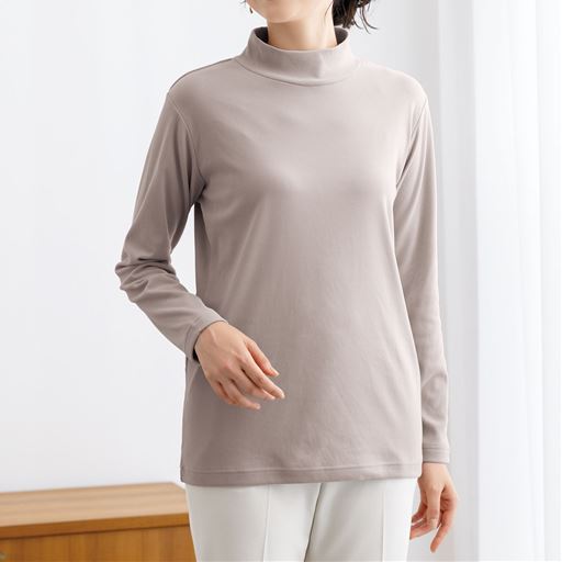 ハイネックで首もとスッキリ。レイヤードスタイルにも使いやすい、あったかTシャツ。グレージュ 着用例