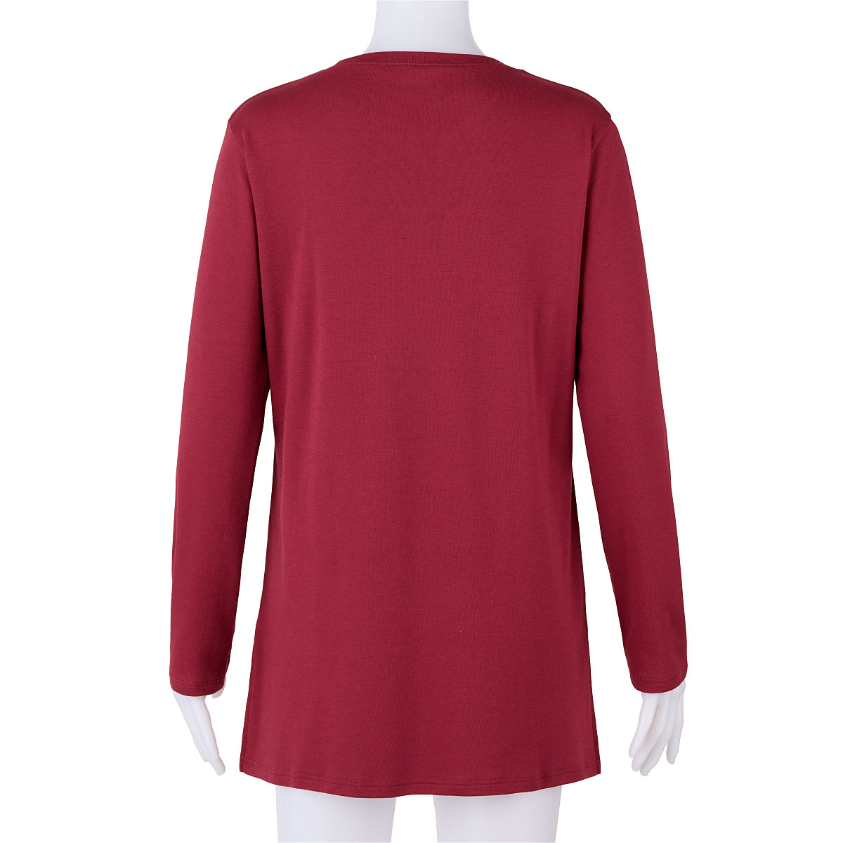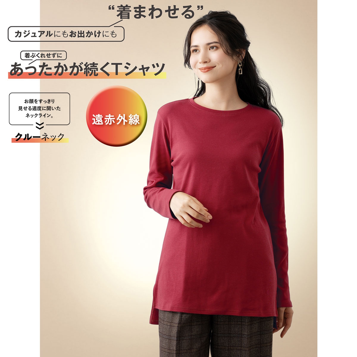 遠赤効果でやさしくあたため。着ぶくれせずにあったかが続く、クルーネックTシャツ。 ウォームレッド着用例