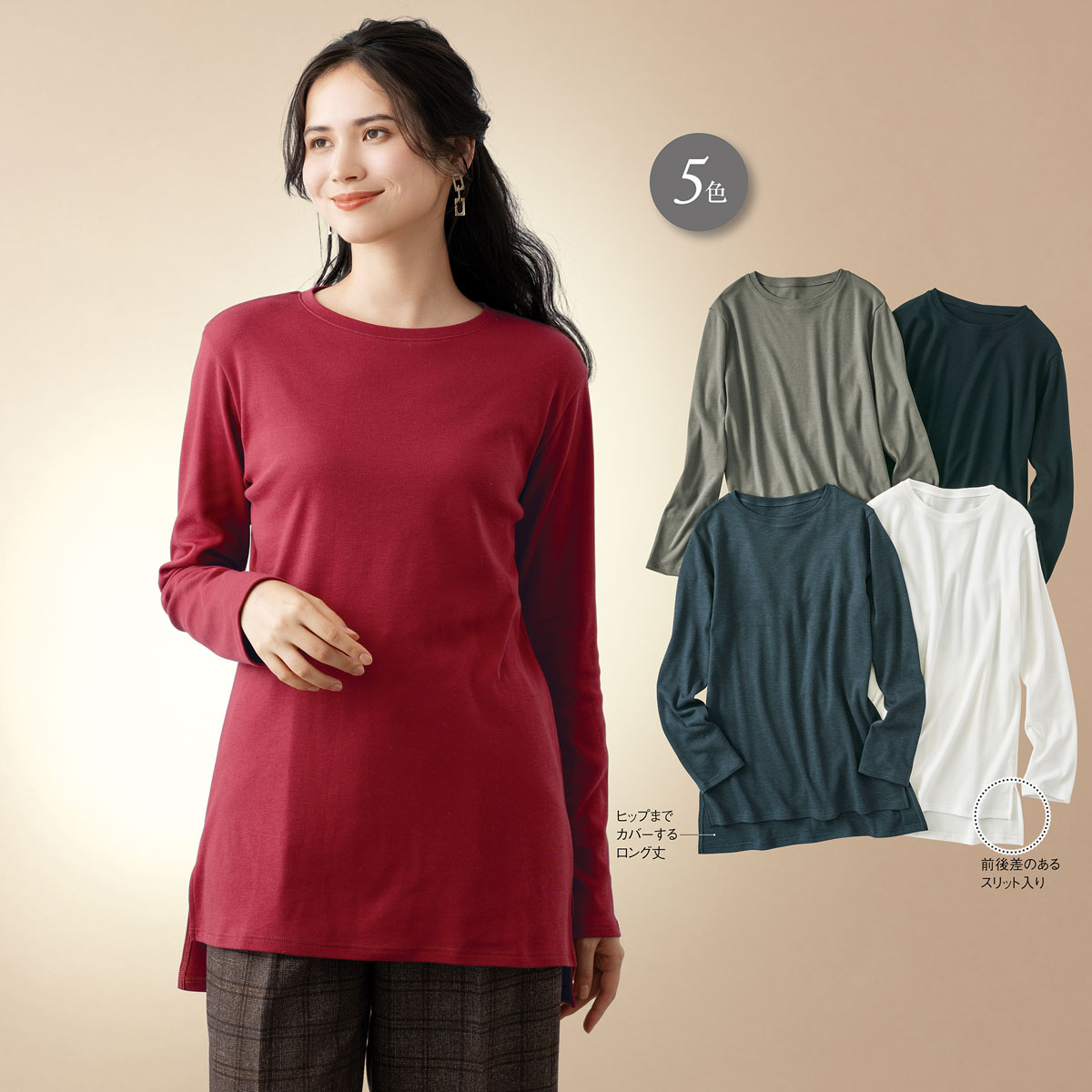 かさばらないのにあたたかいクルーネック長袖Tシャツ