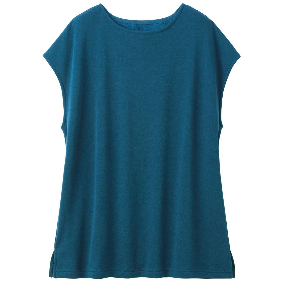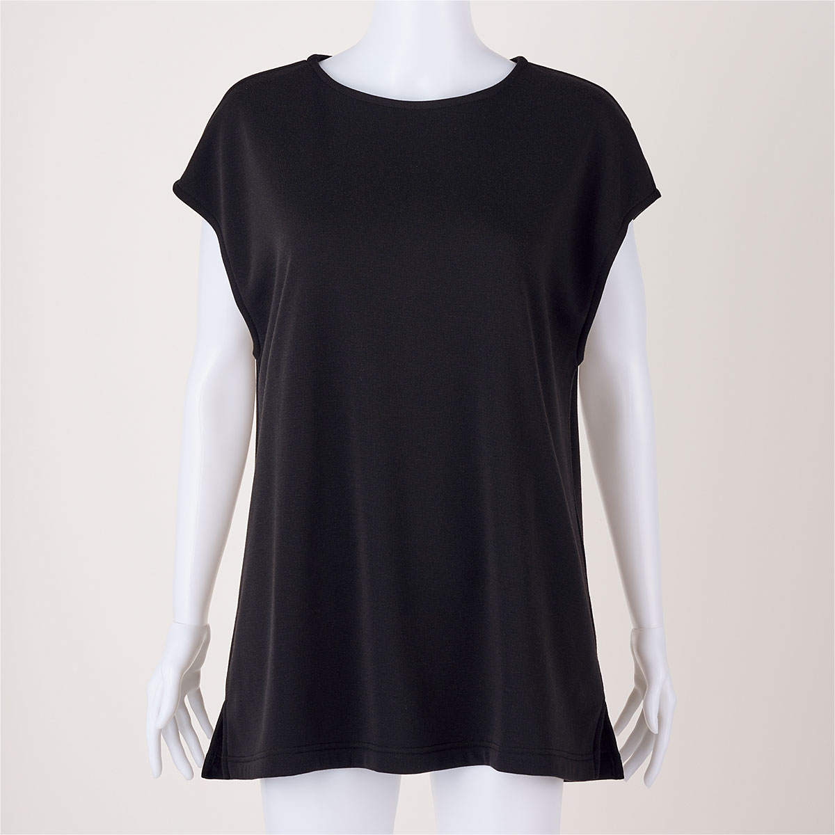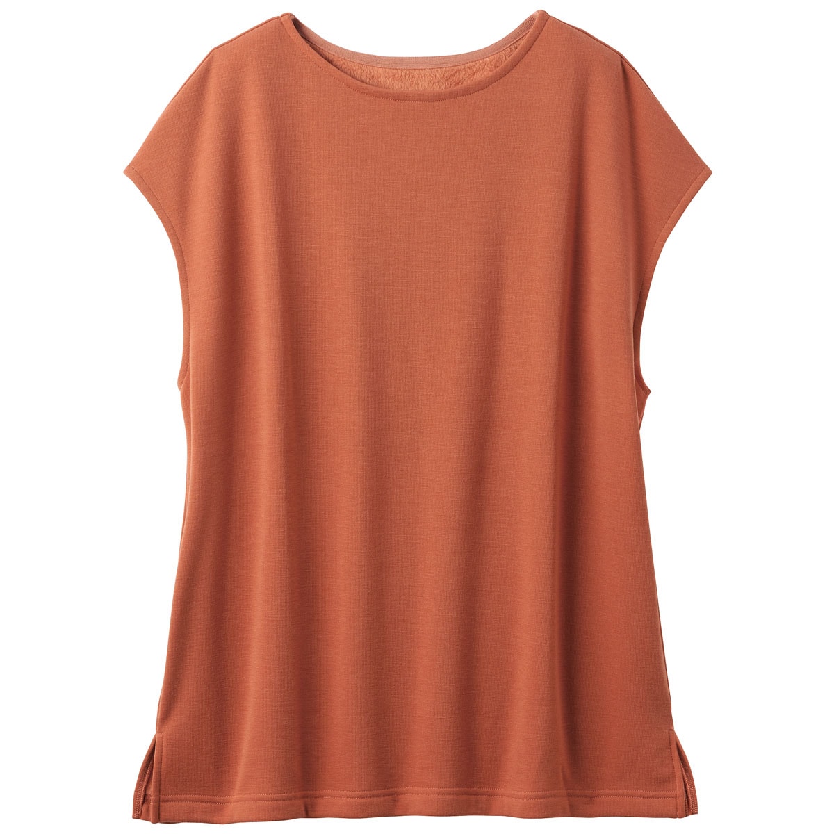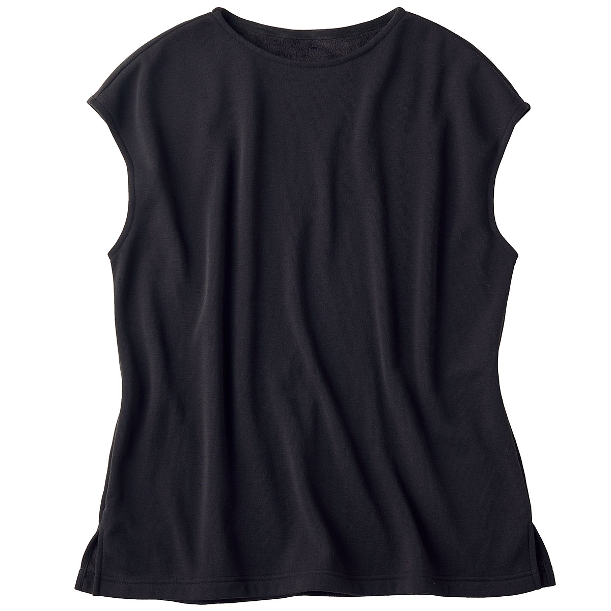 肩まであたたかいフレンチ袖。チュニック丈で腰まわりもあたたか。裾はスリット入りで動きやすい。くつろぎタイムからちょこっとお出かけまで便利に使えます。ブラック 着用例 ※インにはUP-978「マシュマロみたいなフリースハイネックTシャツ」グレージュを着用しています(別売)。