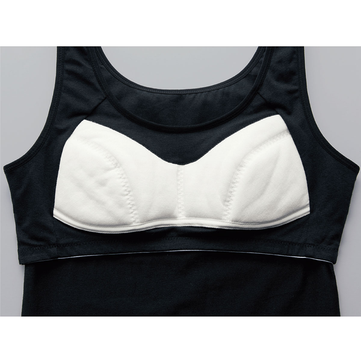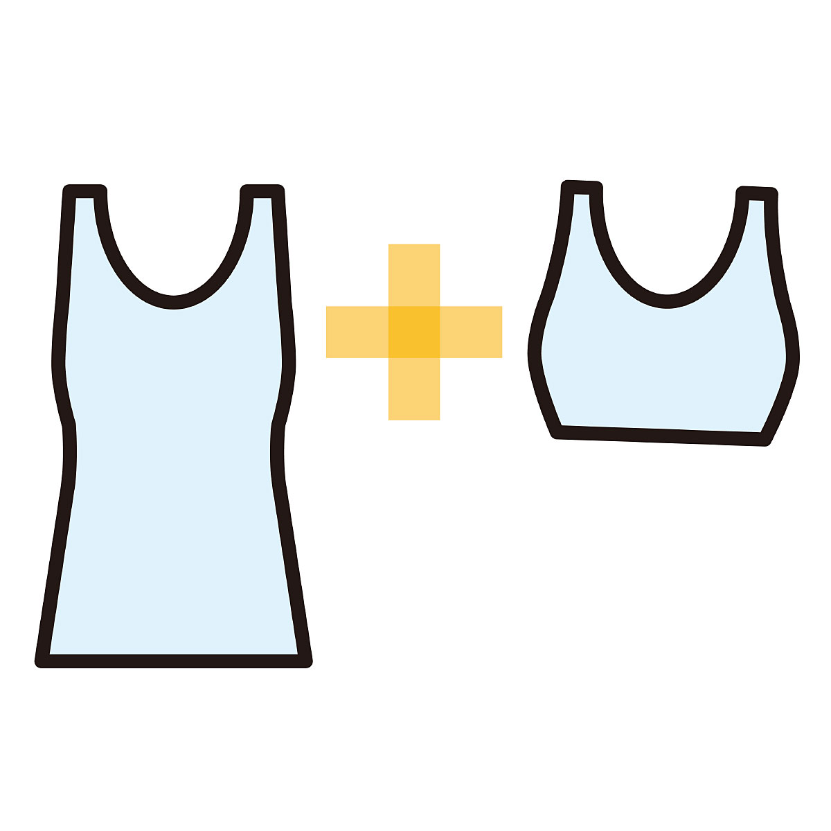 スポブラ内蔵で重ね着しなくてもOK!ふわふわカップのスポブラとタンクトップの一体型。インナーの重ね着がいらず、着替えもスピーディー。