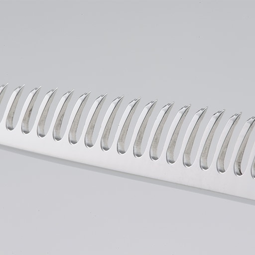 スキハサミの刃の山は、一般の方が最もきれいに切れる本数を厳選したもの。