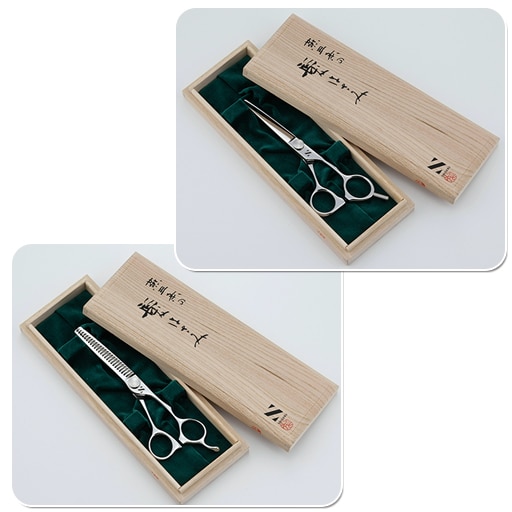 1丁数十万円というプロユースのハサミを製造するメーカー〈シゲル工業〉が一般向けにつくったモデルが本品。軽い力で切れる、髪が逃げない刃当たりは充分プロ向けとして使える、とメーカーが太鼓判を押す切れ味です。カットハサミは使いやすい5.5インチカットシザー。スキハサミの刃の山は、一般の方が最もきれいに切れる本数を厳選したもの。この切れ味がこの価格で!というお値打ちのハサミです。更にお得なセット組みもあります。