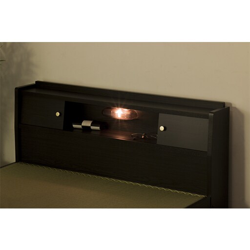 ダークブラウン セミダブル棚照明引出付畳ベッド
